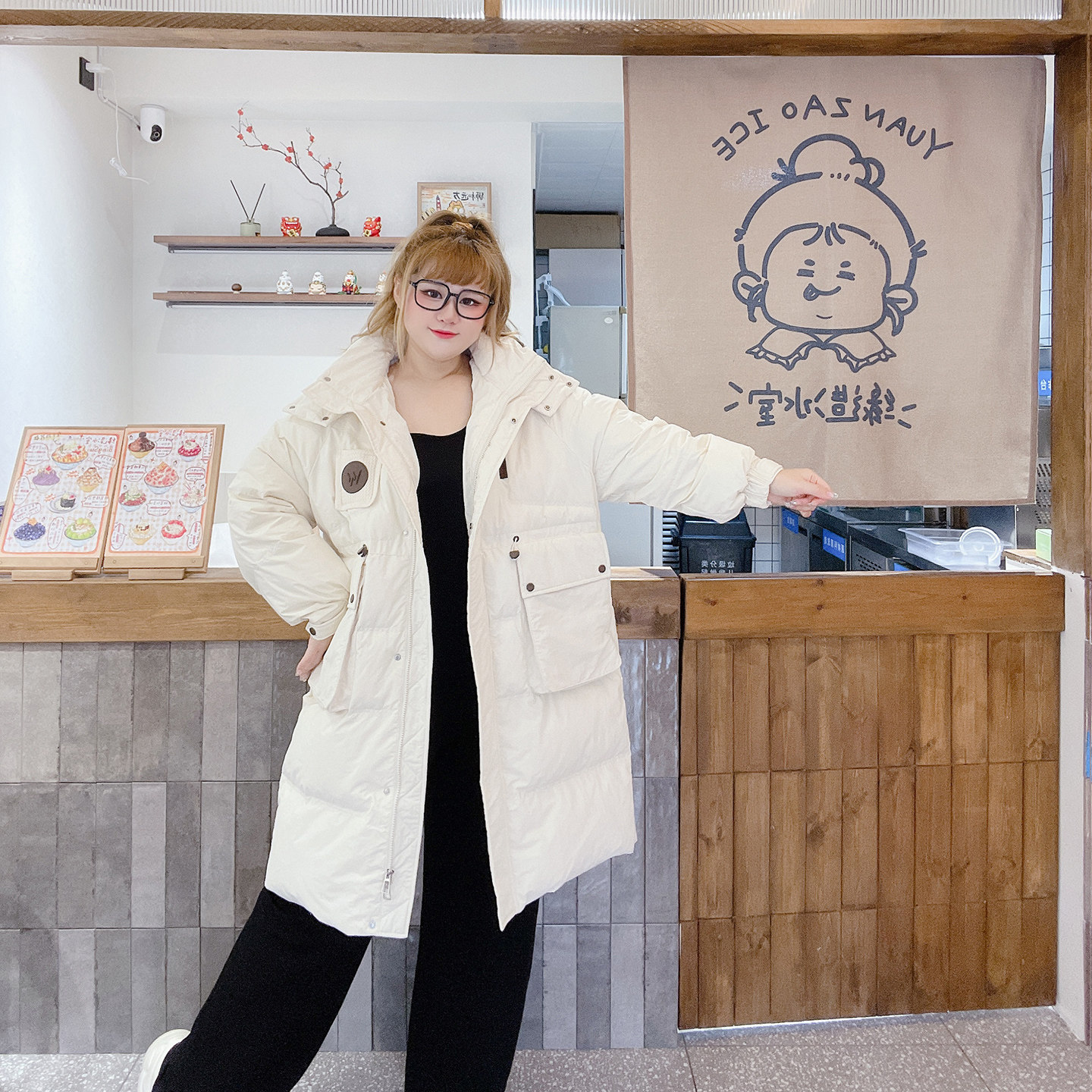 淘宝胖莹莹大码羽绒服韩系时尚简约加厚加肥加大保暖中长款连帽外套