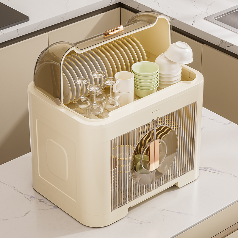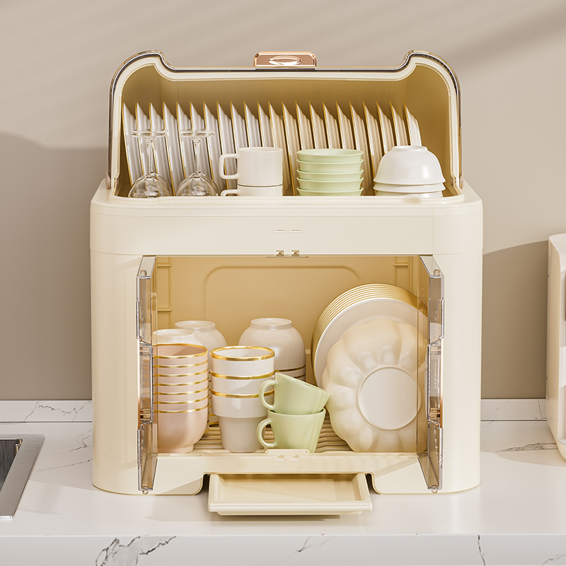 天桌面双层茶杯茶具收纳盒透明带盖整理柜餐桌厨房杯子收纳置物架