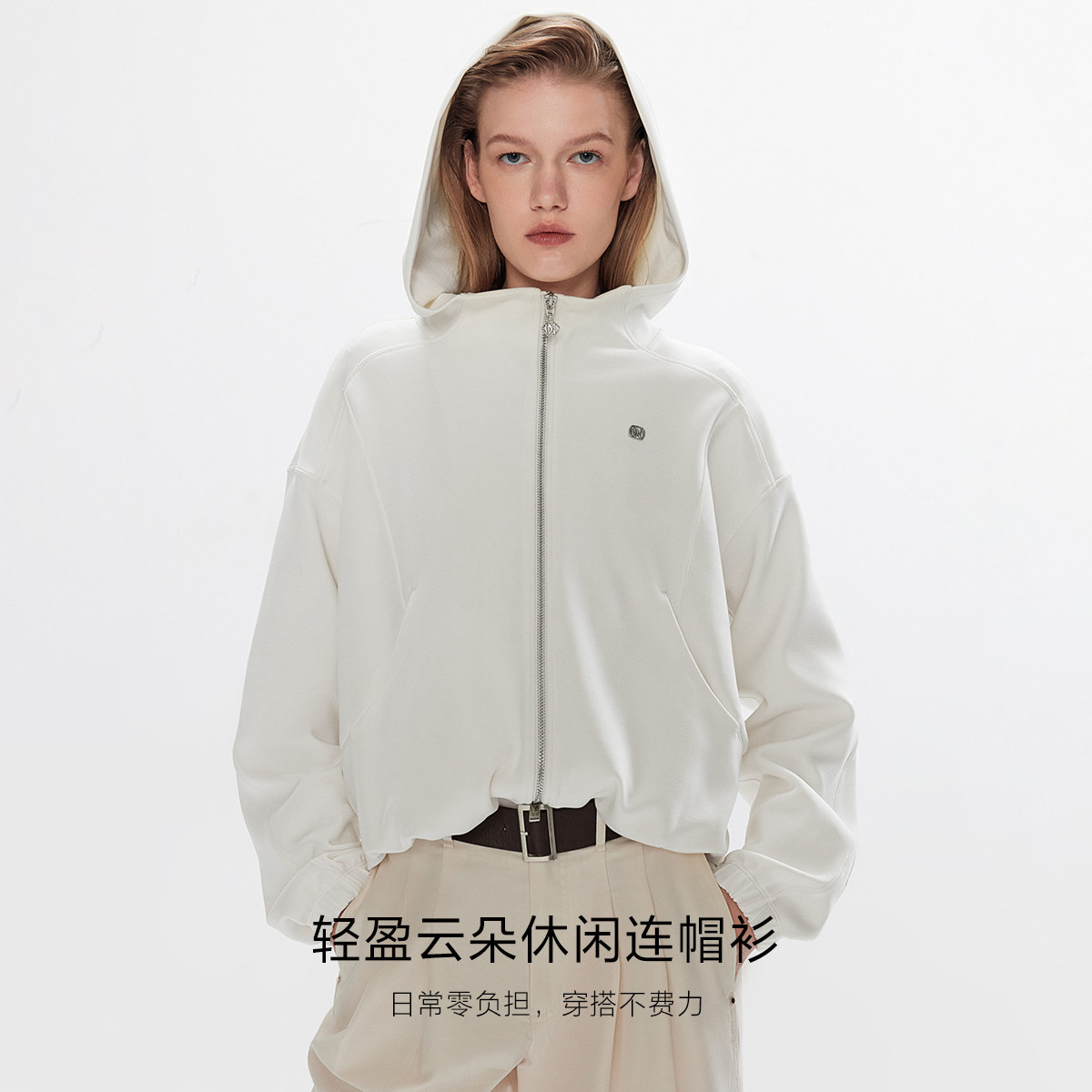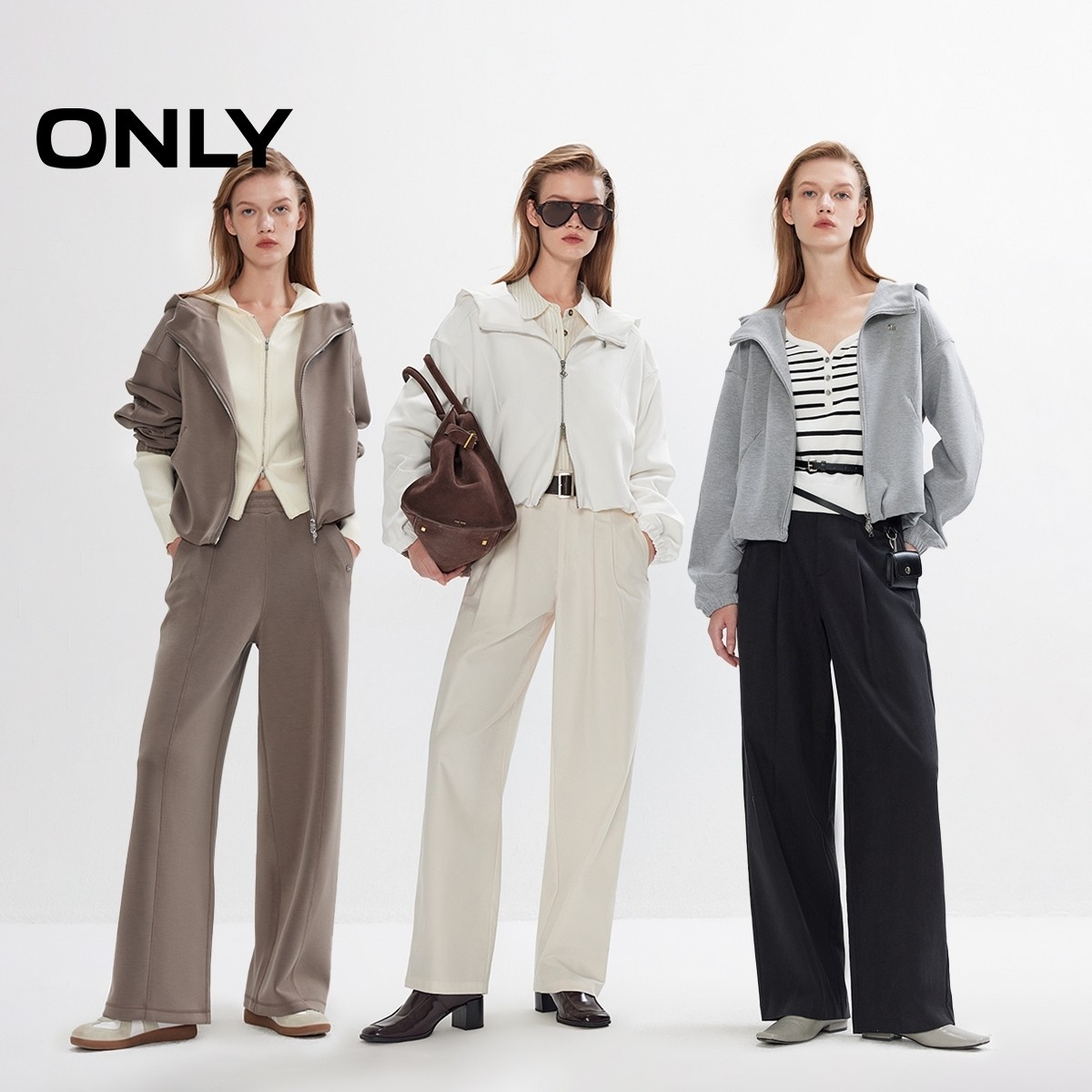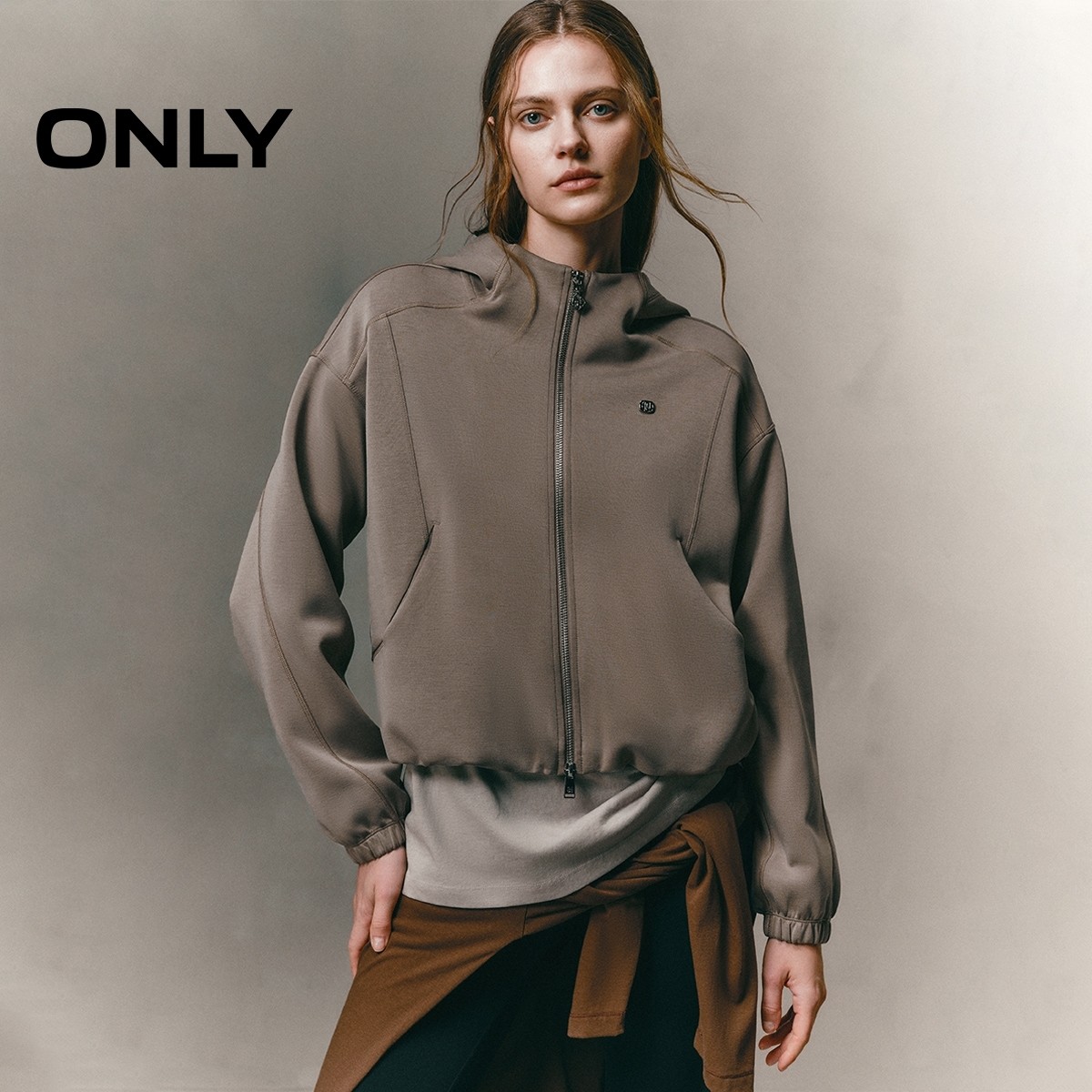 淘宝绫致ONLY2025秋冬新款宽松落肩连帽双向拉链卫衣外套女