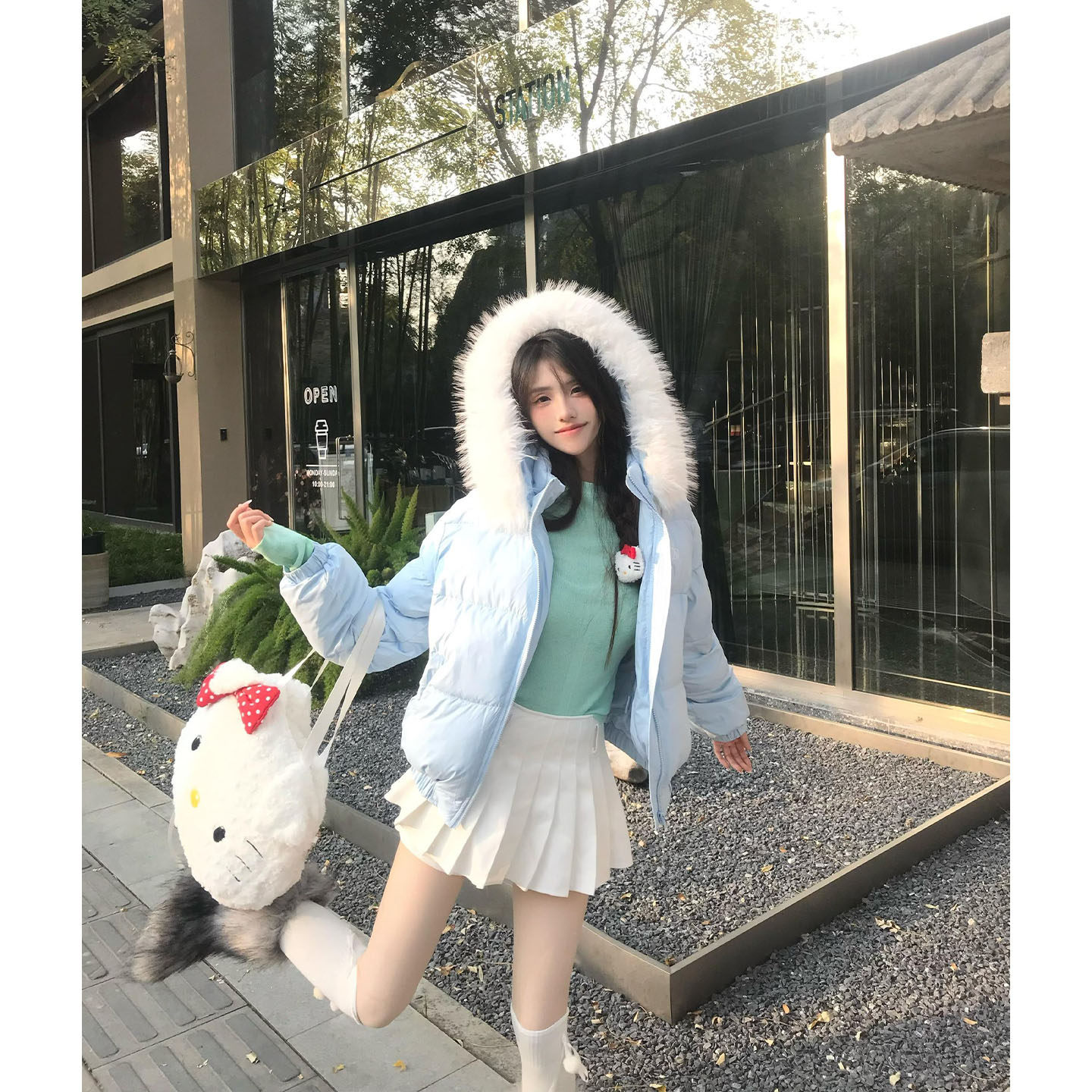 淘2025新款小众棉衣针织拼接羽绒棉服女装短款立领外套小个子穿搭
