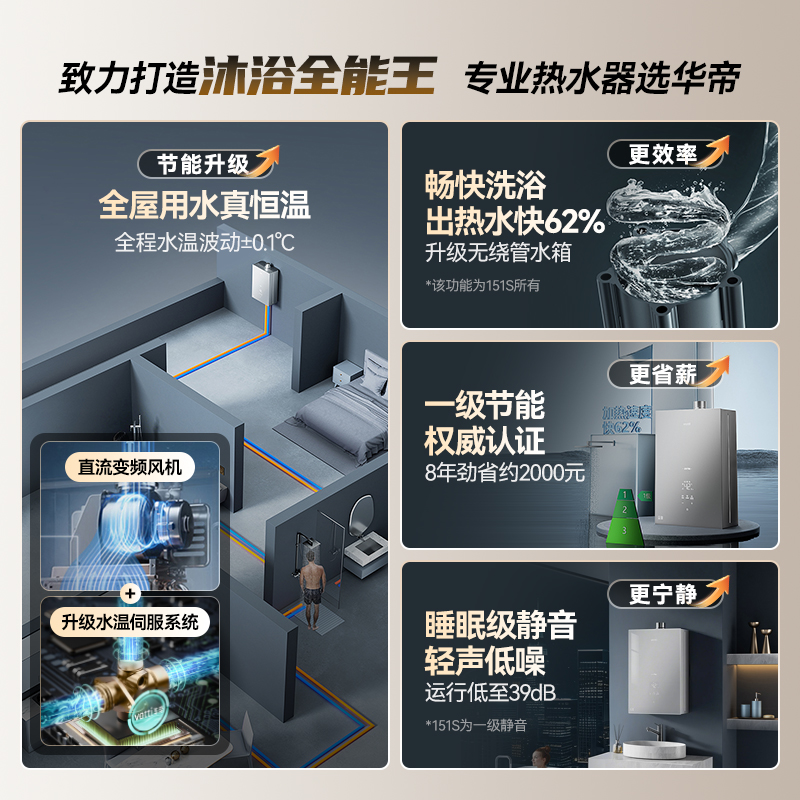 天猫华帝燃气热水器恒温水伺服家用天然气16升洗澡节能i12151S官方