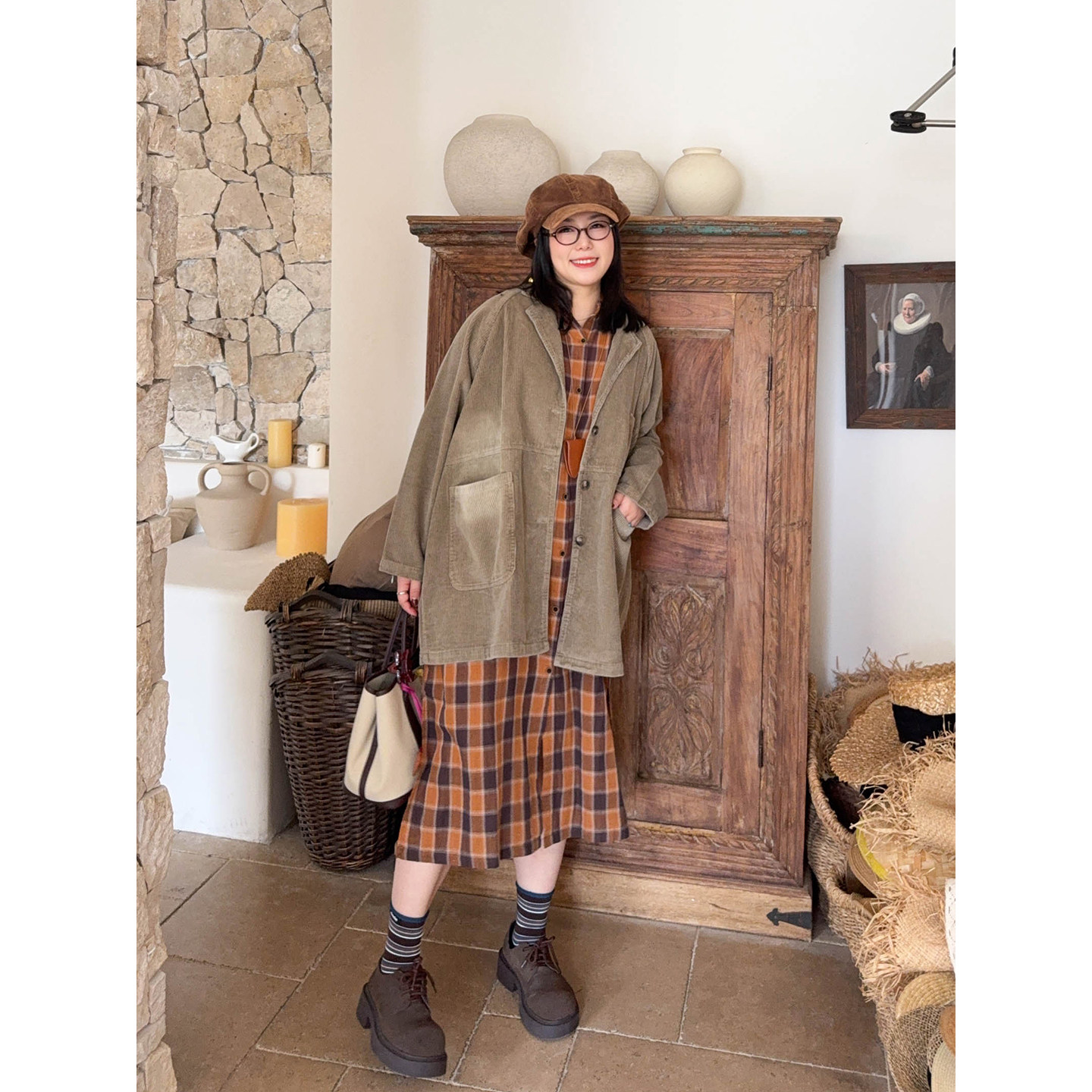 VOGANA戛纳家大码女装摩登复古时髦渐变色宽松显瘦灯芯绒西装外套,融合复古格调与现代时尚,专为自信女性打造。采用优质灯芯绒面料,触感柔软,挺括有型,独特的渐变色设计赋予整体层次感,彰显个性品味。宽松H版型剪裁,巧妙修饰身形,显瘦不束缚,适合多种体型。精致翻领与单排扣设计,简约利落,轻松驾驭通勤、约会或休闲场合。无论是搭配连衣裙还是高腰裤,都能演绎出慵懒又高级的法式风情。VOGANA以匠心工艺与贴心尺码,让每位女性穿出自信与优雅。