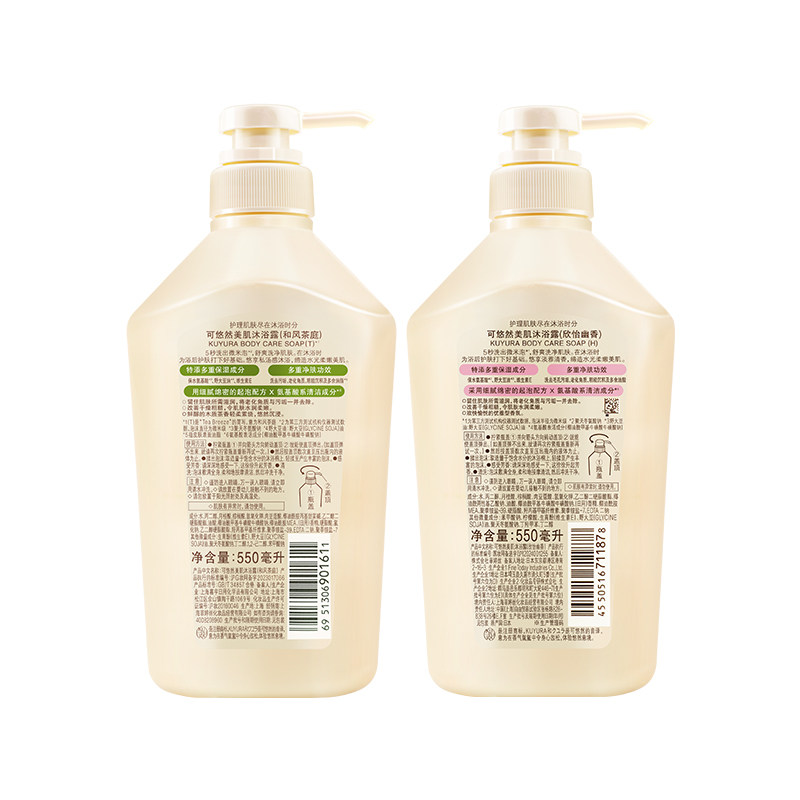 天猫可悠然美肌沐浴露和风茶庭+欣怡幽香550ml+450ml持久留香滋润清洁
