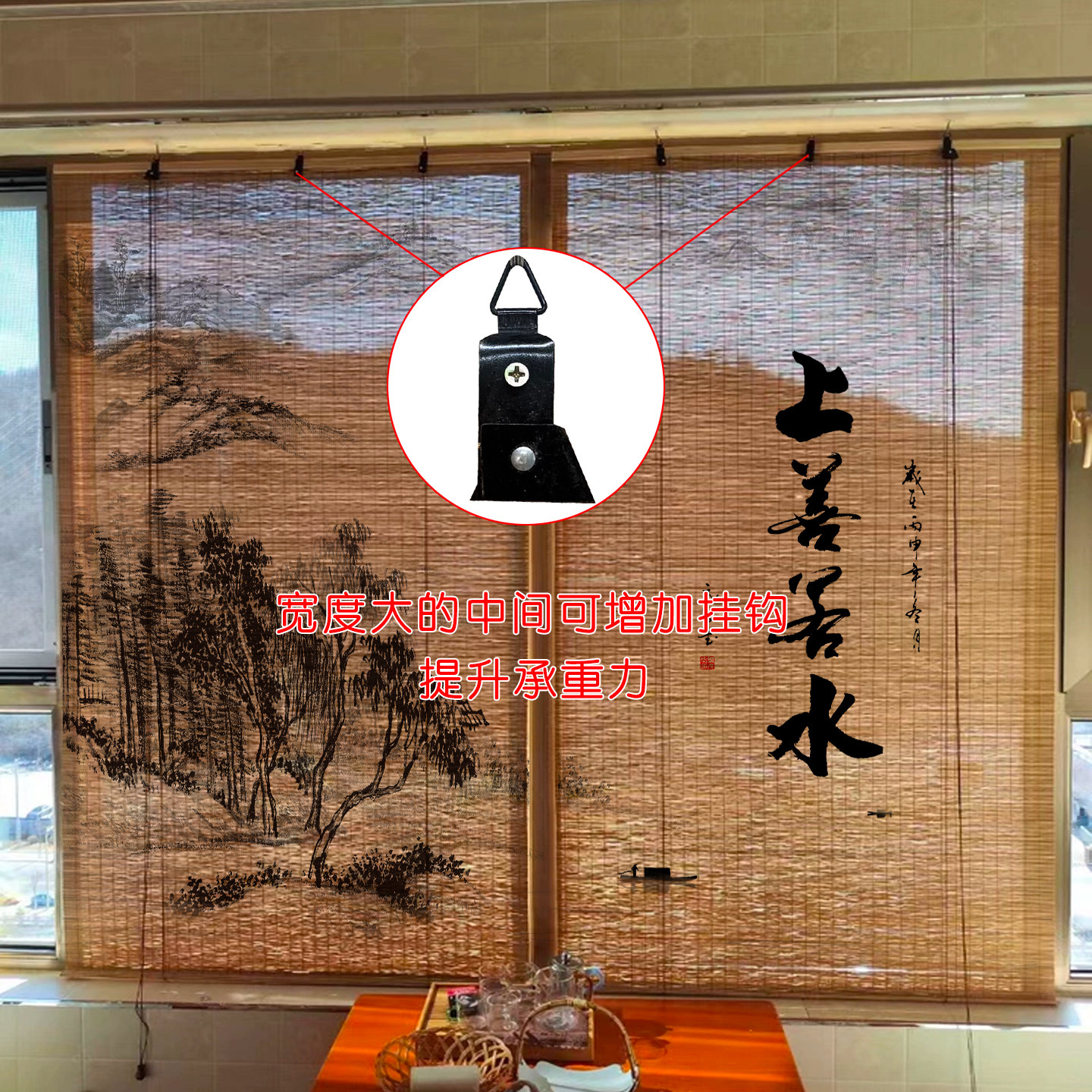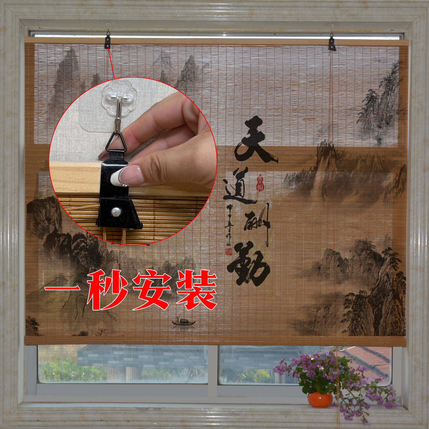 淘宝印花竹帘免打孔卷帘粘钩挂帘遮阳防晒窗帘饭店茶室门帘挂画隔断帘
