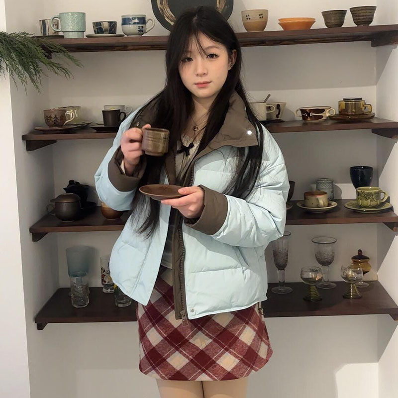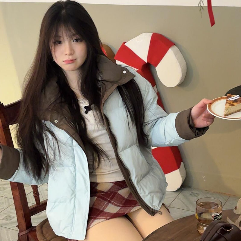 天2025秋冬法式气质设计感小众韩国短款羽绒棉服女针织拼接保暖外套
