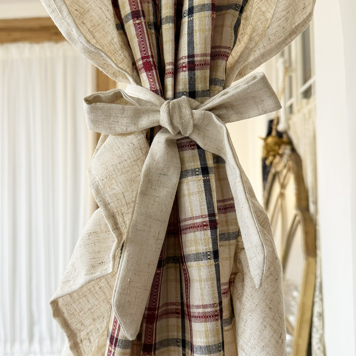 天法式复古亚麻纱帘窗帘卧室客厅阳台飘窗厨房遮挡帘半帘门帘小短帘
