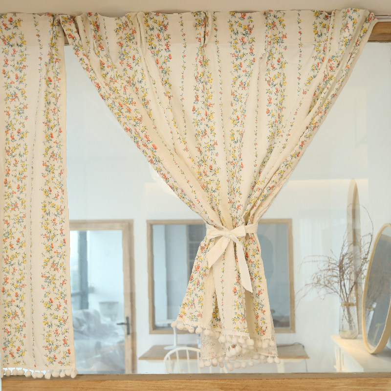 淘美式窗帘半帘乡野荷叶花卉遮光挂钩免打孔门帘韩式粘贴魔术贴定制