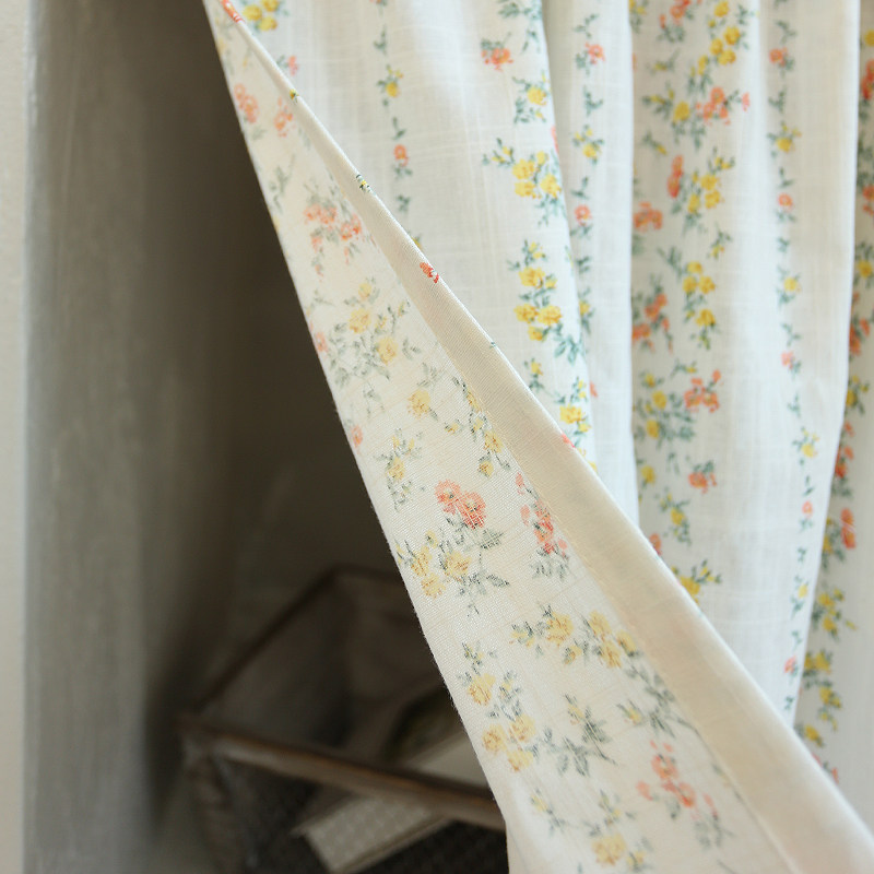美式窗帘半帘乡野荷叶花卉遮光挂钩免打孔门帘韩式粘贴魔术贴定制