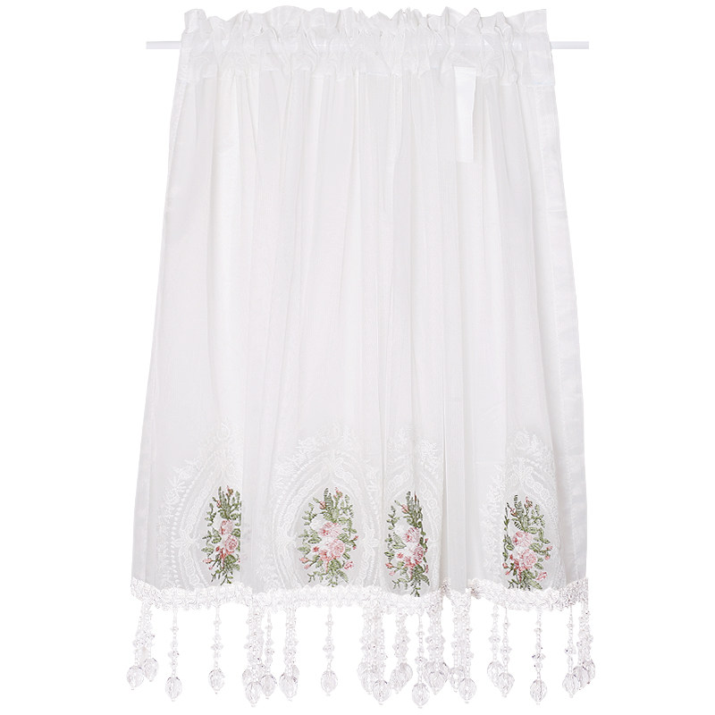 淘宝鸢尾乡旅玫瑰花水晶珠美式乡村白蕾丝门帘窗帘隔断纱帘咖啡帘半帘