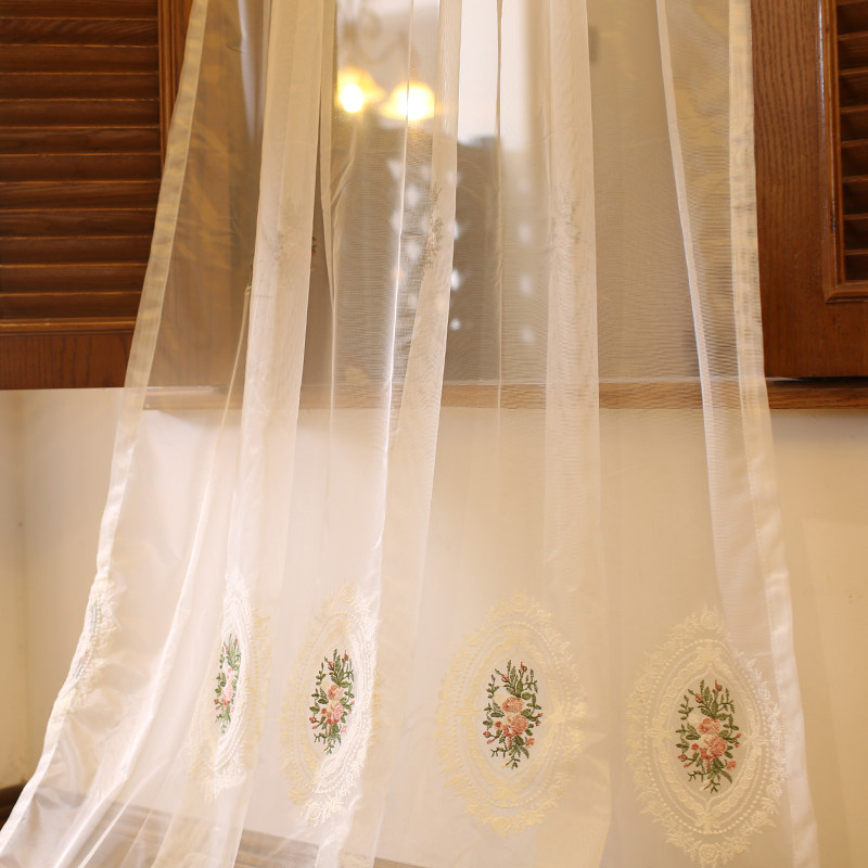 鸢尾乡旅米色蕾丝半帘宫廷圆环绣窗帘门帘美式穿杆免打孔咖啡帘