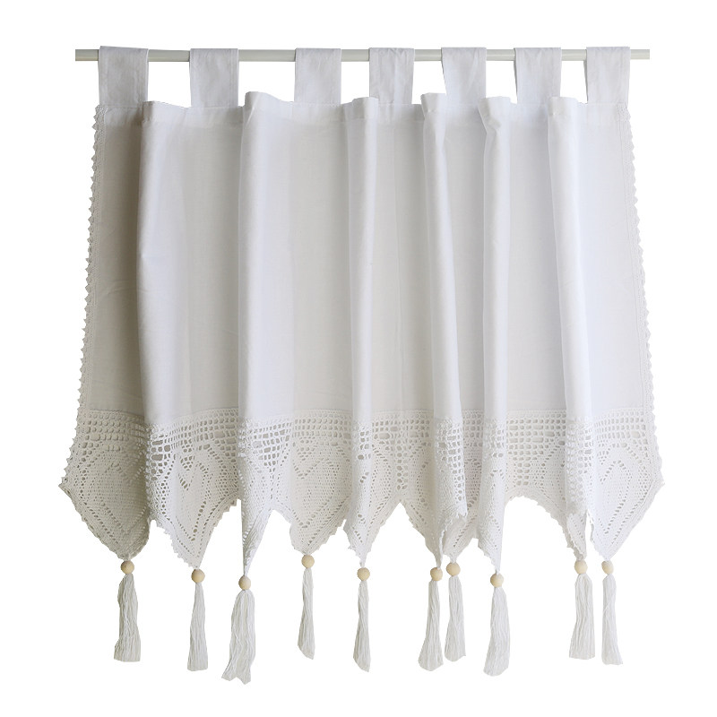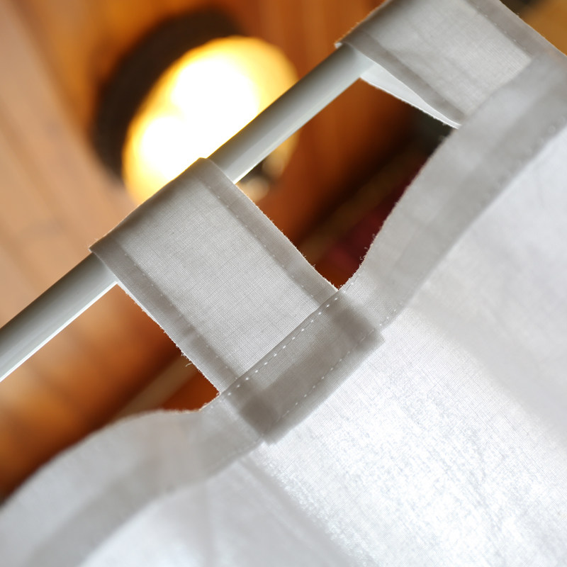 淘宝鸢尾乡旅纯白外贸棉布挂带短帘窗帘门帘美式半帘穿杆免打孔咖啡帘