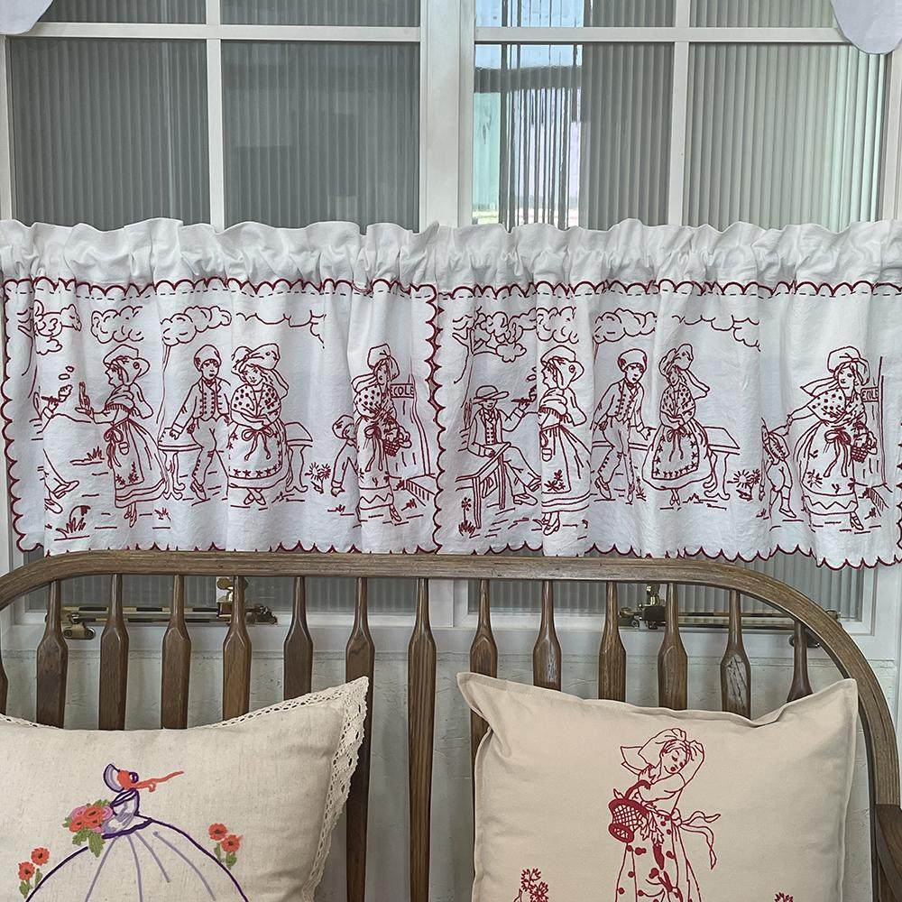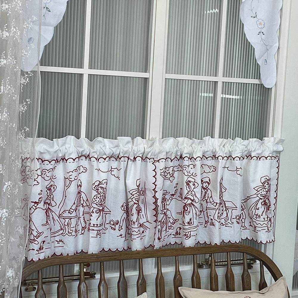 淘宝法式新婚中古风少女系红绣人生三部曲砂洗棉麻刺绣遮挡帘半帘门帘