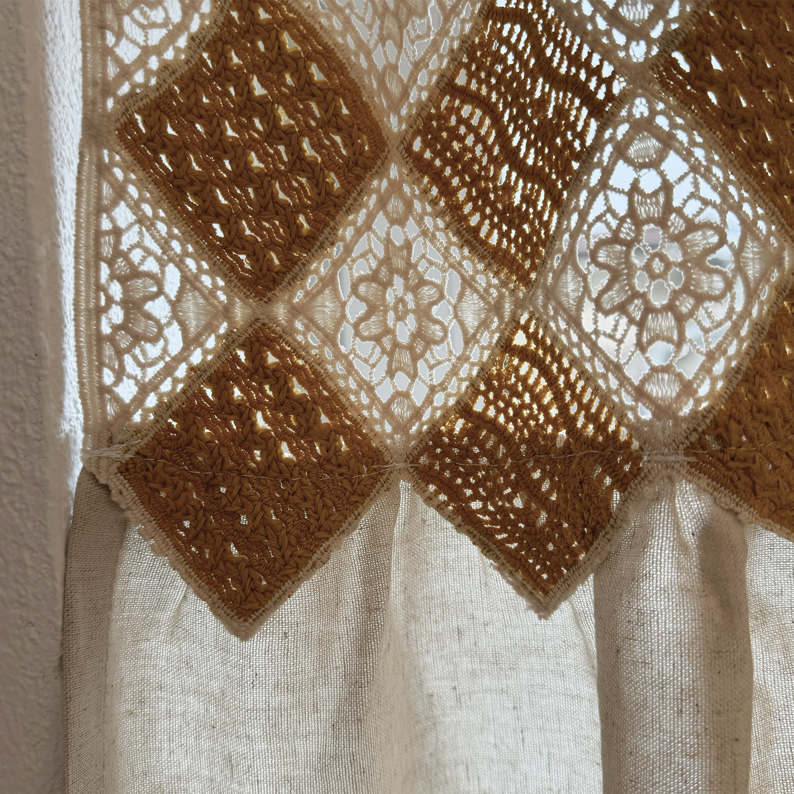 “永恒之舞”棉麻幔手工钩针帘头,是一款兼具美学与实用的半帘门帘。采用天然棉麻材质,透气亲肤,环保耐用,搭配精致手工钩针工艺,纹理细腻,垂感自然,为家居增添一抹文艺气息。免打孔设计,搭配粘贴式安装与系带固定,轻松贴合柜门、隔断或门框,不伤墙面,拆卸便捷。适用于衣柜、厨房柜、阳台隔断等空间,既能巧妙遮挡杂乱,又提升整体装饰格调。半帘长度恰到好处,透光不透影,营造温馨私密氛围。无论是北欧风、日式还是田园风格家居,都能和谐融入,展现独特的生活品味与手作温度。