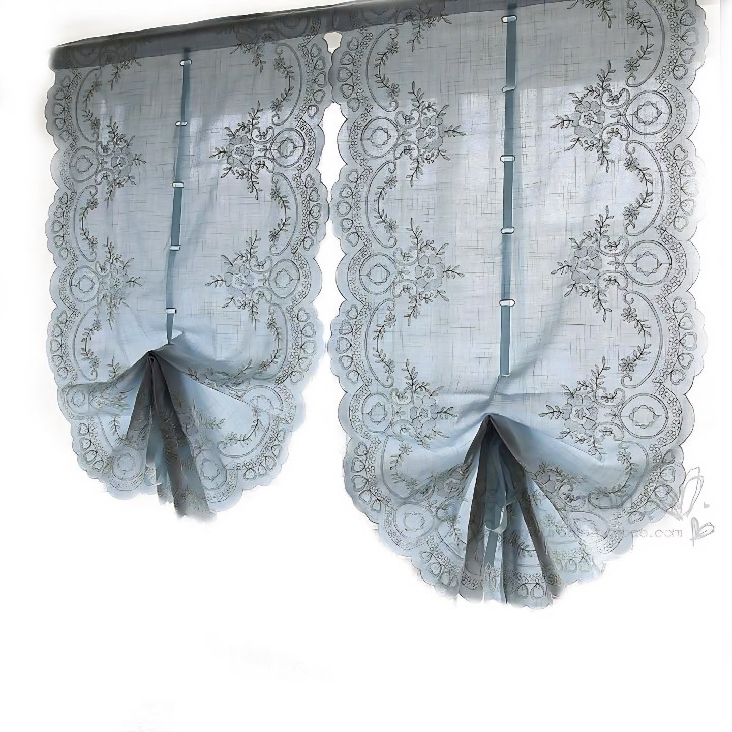 淘法式白色蕾丝厨房短帘美式纱帘半帘魔术贴免打孔穿杆隔断咖啡门帘