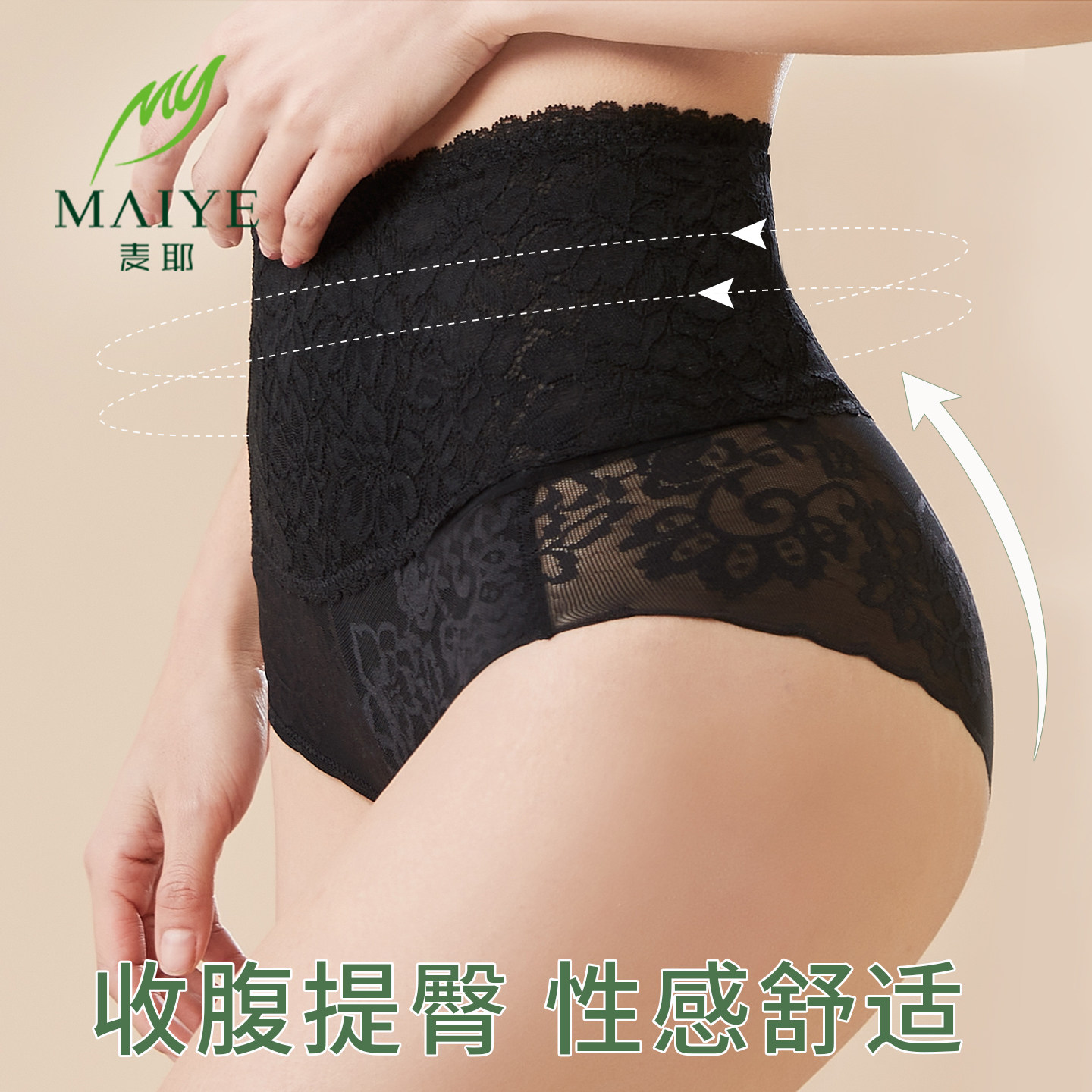 高腰收腹内裤女无痕性感蕾丝薄款透气纯棉抗菌裆提臀女士三角短裤