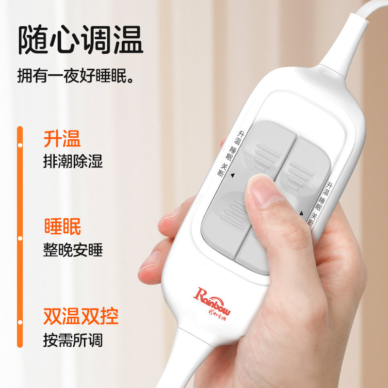 彩虹电热毯双人双控四温区电褥子可调上下左右控温官方旗舰店正品