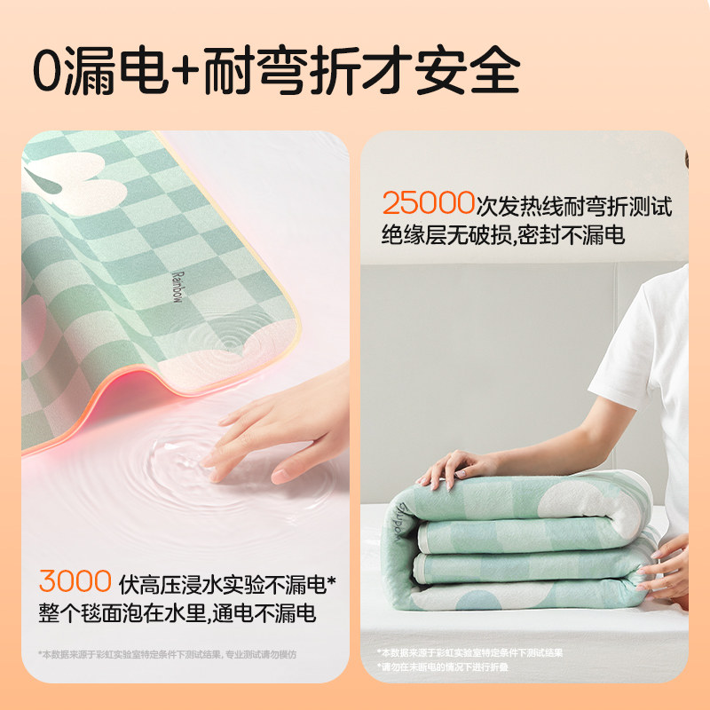 彩虹电热毯双人双控家用法兰绒官方旗舰店电褥子单人官方旗舰店