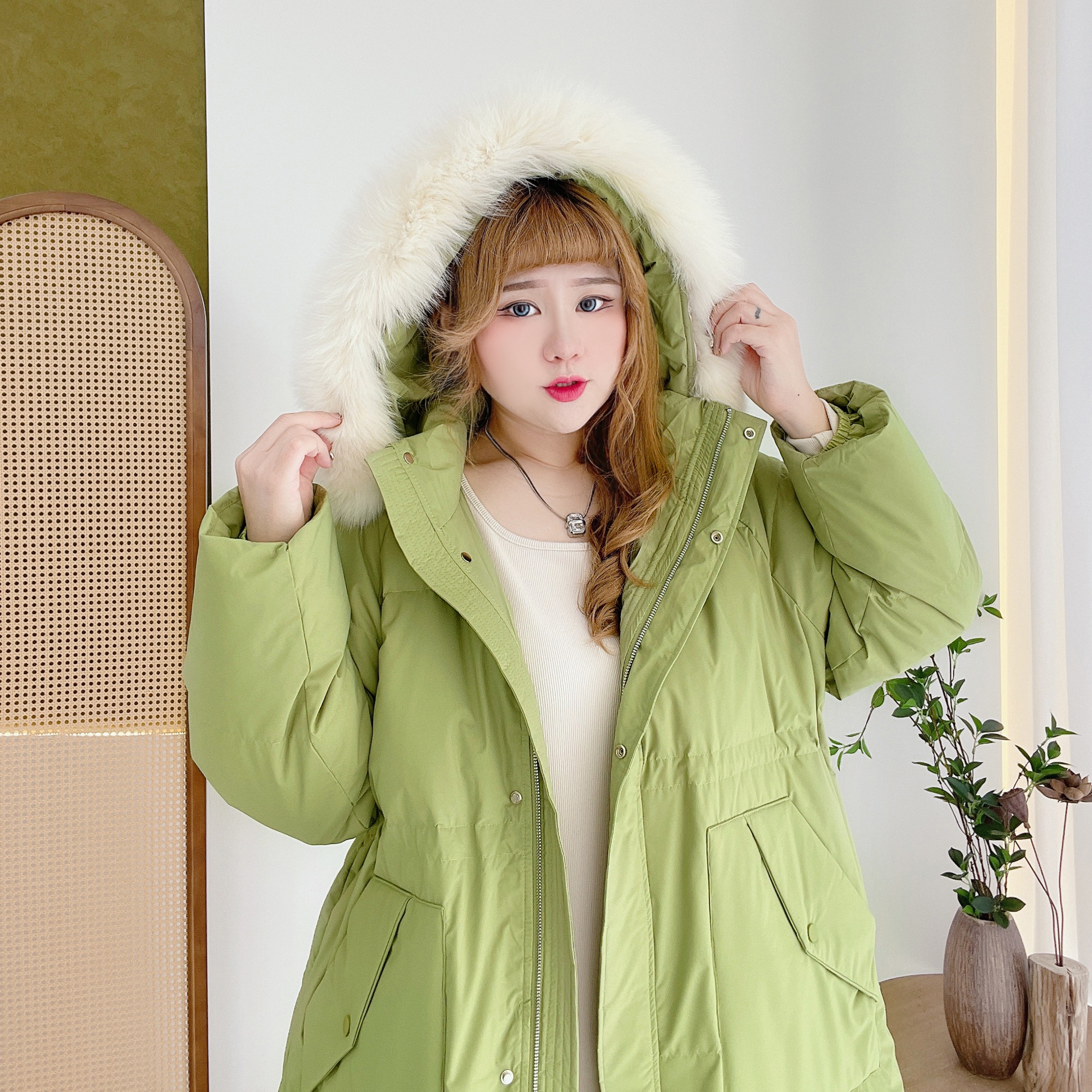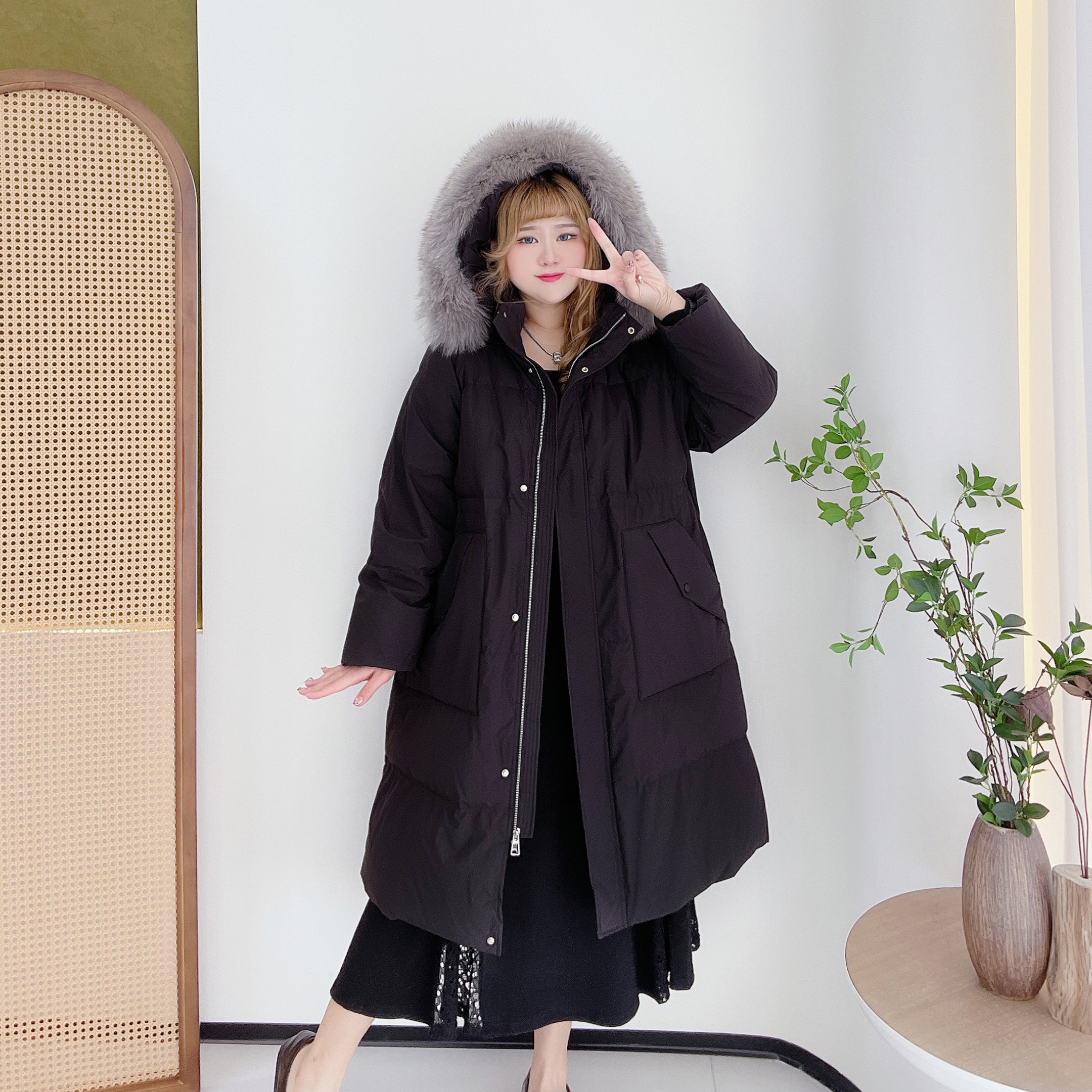 大码女装大毛领羽绒服冬季保暖新款胖mm中长款时尚加厚保暖外套