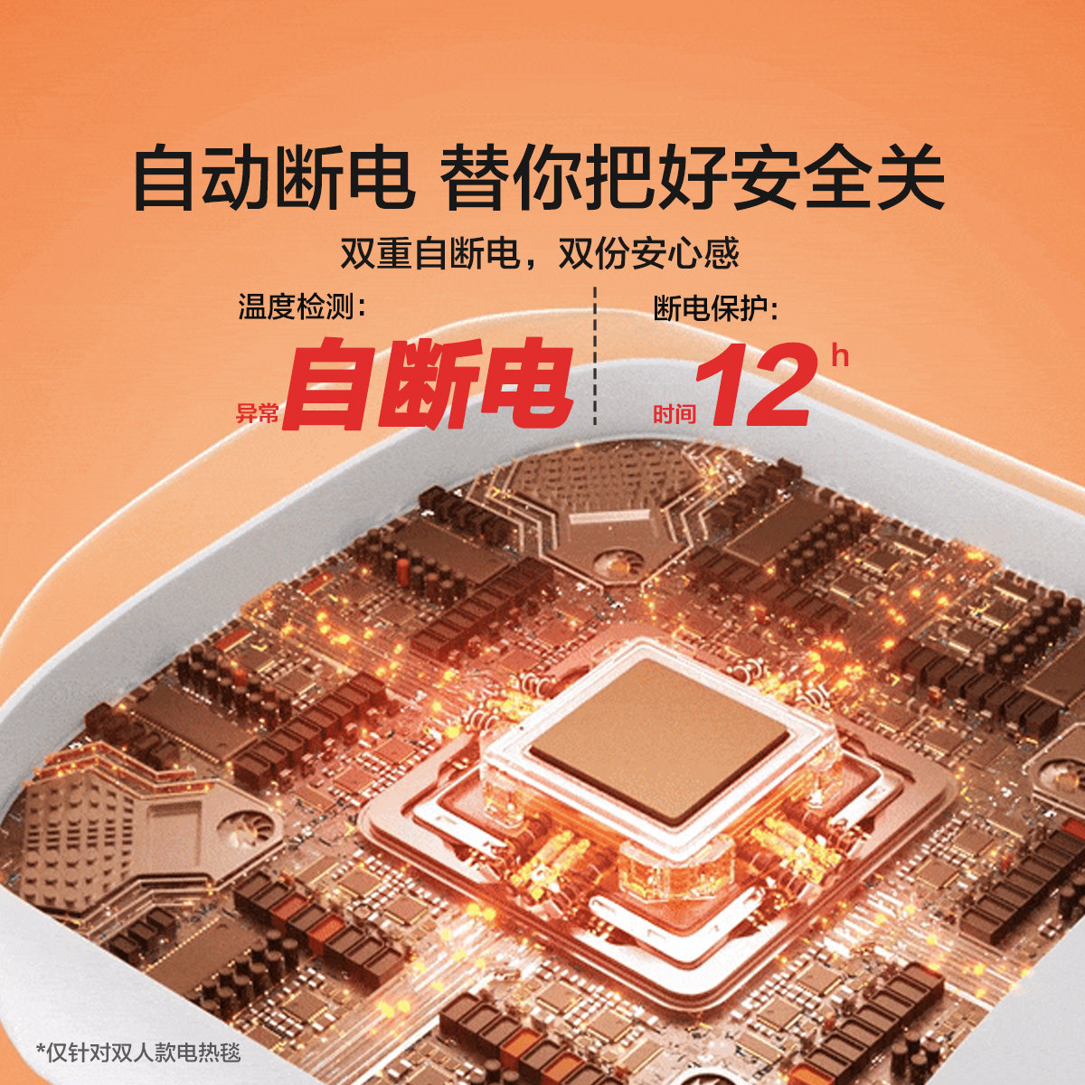 水星家纺电热毯,专为宿舍、家庭等场景设计,提供单人及双人双控款式,满足不同需求。采用优质面料,触感柔软亲肤,安全耐用。双人款支持左右独立调温,各自掌控舒适温度,避免争抢。具备多档调温功能,智能恒温,使用更安心。通过国家3C安全认证,配备过热保护与自动断电技术,有效防止安全隐患。低电压设计,节能省电,适合长时间使用。官方旗舰店直售,品质保障,售后无忧。无论是寒冷冬夜还是宿舍小空间,水星家纺电热毯都是温暖贴心的理想选择,让每一晚都舒适安眠。