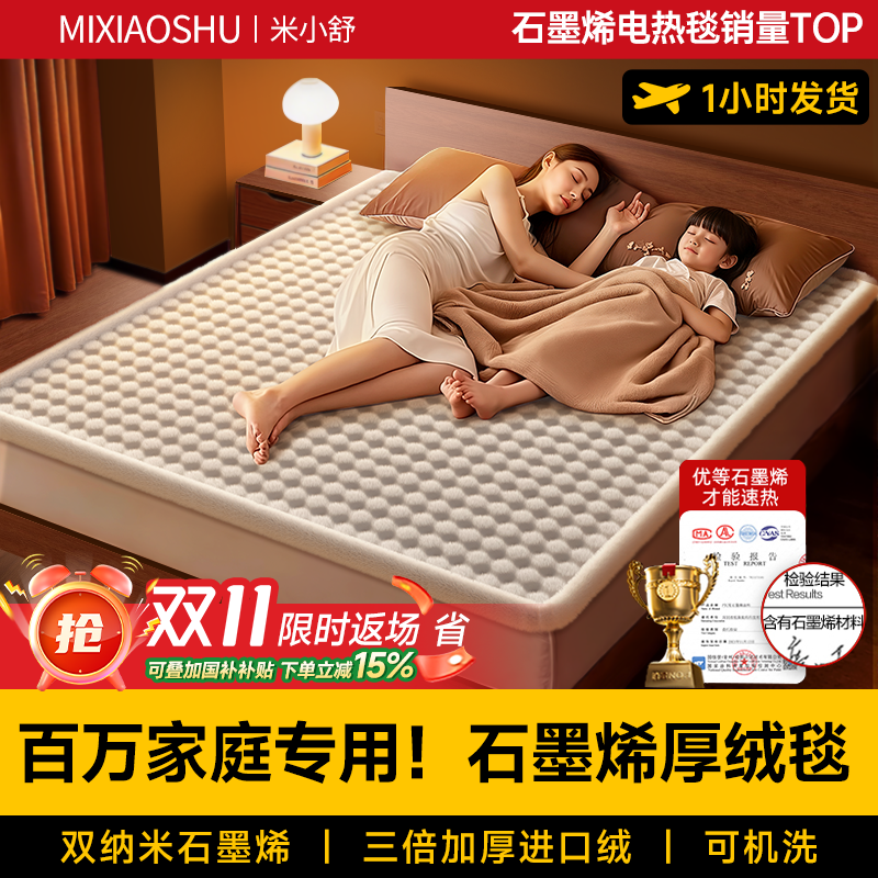 2025新款石墨烯电热毯正品官方旗舰店电褥子双人双控调温开关暖身