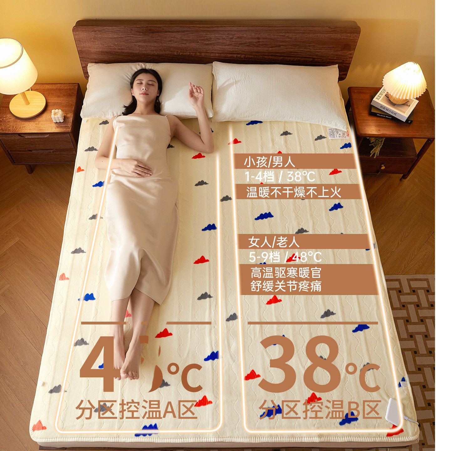 彩虹电热毯双人双控四温区电褥子可调上下左右控温官方旗舰店正品