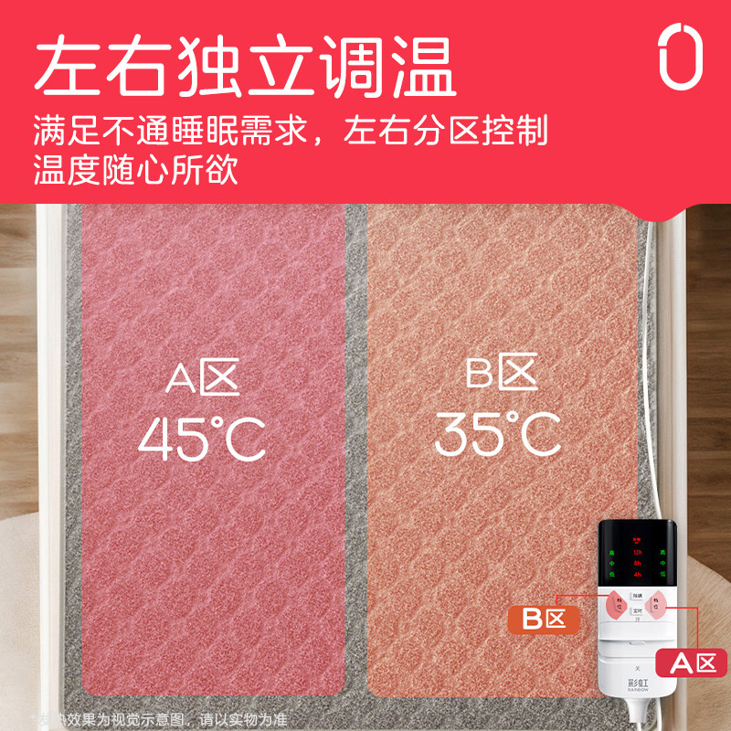 彩虹电热毯双人双控四温区电褥子可调上下左右控温官方旗舰店正品