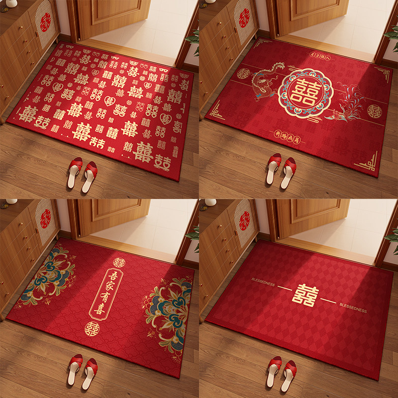 天猫中式结婚喜字入户门地垫喜庆进门门口红地毯新婚门垫婚房布置脚垫
