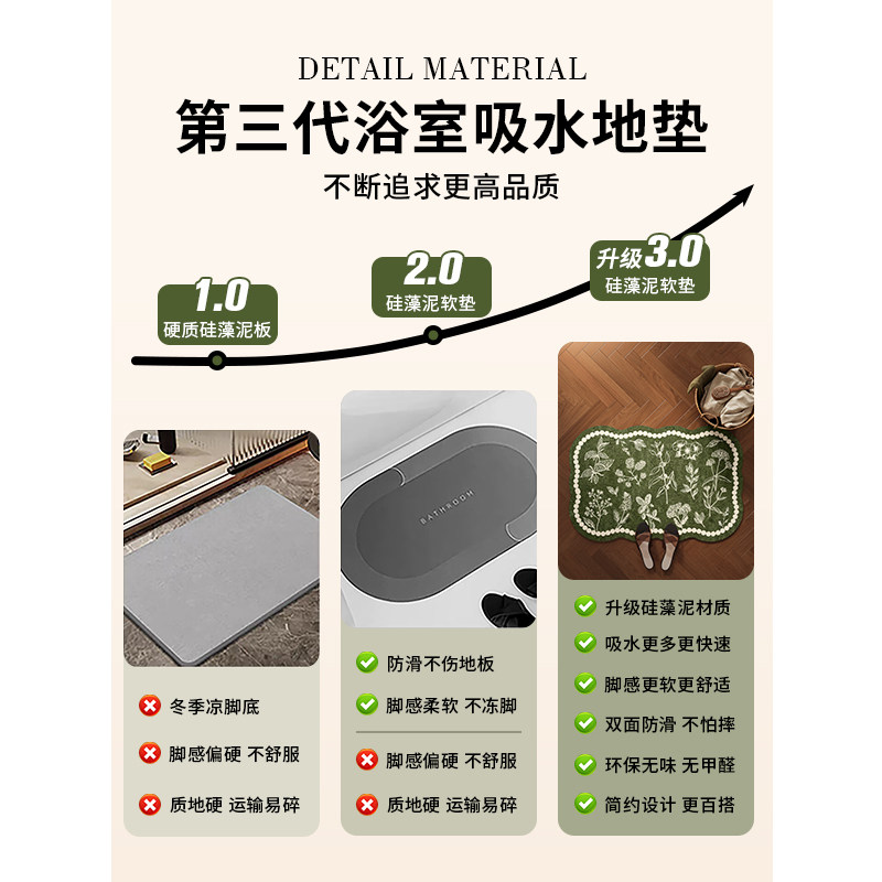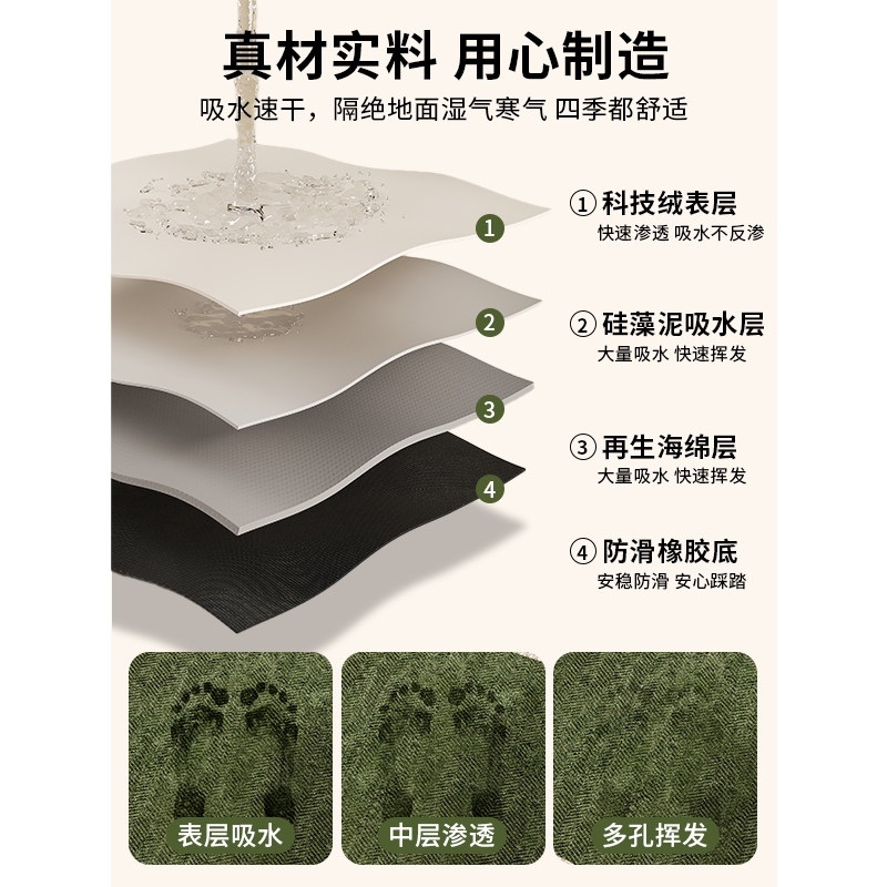 天浴室地垫硅藻泥防滑吸水软垫洗手间厨房脚垫子卫生间门口厕所地毯