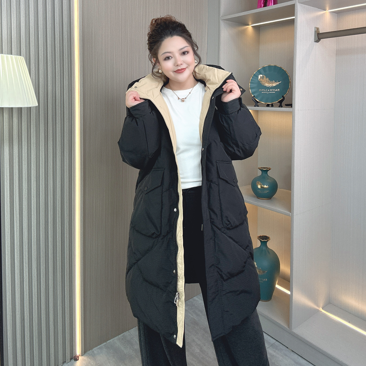 淘宝白鸭绒羽绒服女装大码中长款2025年冬季新款加厚保暖时尚连帽外套
