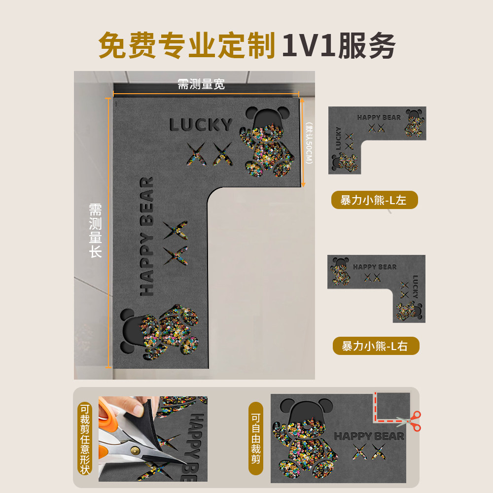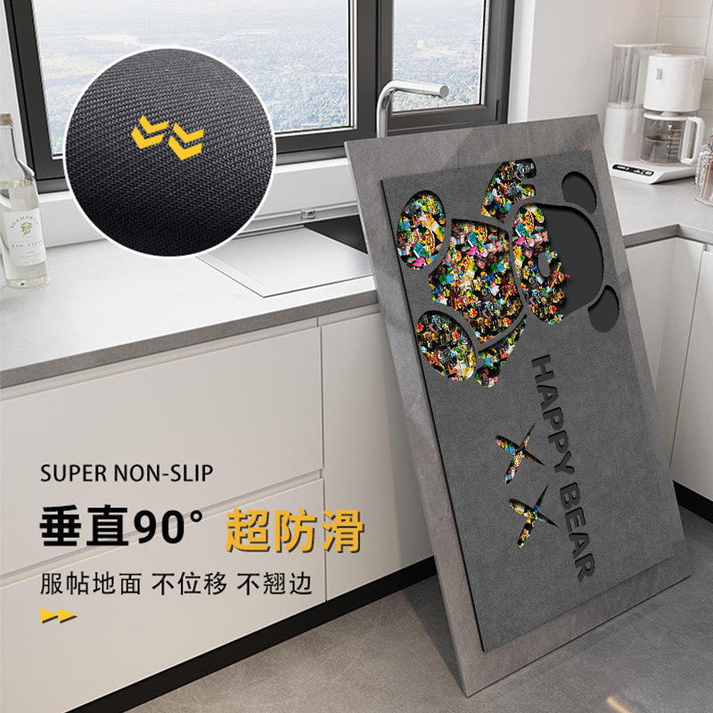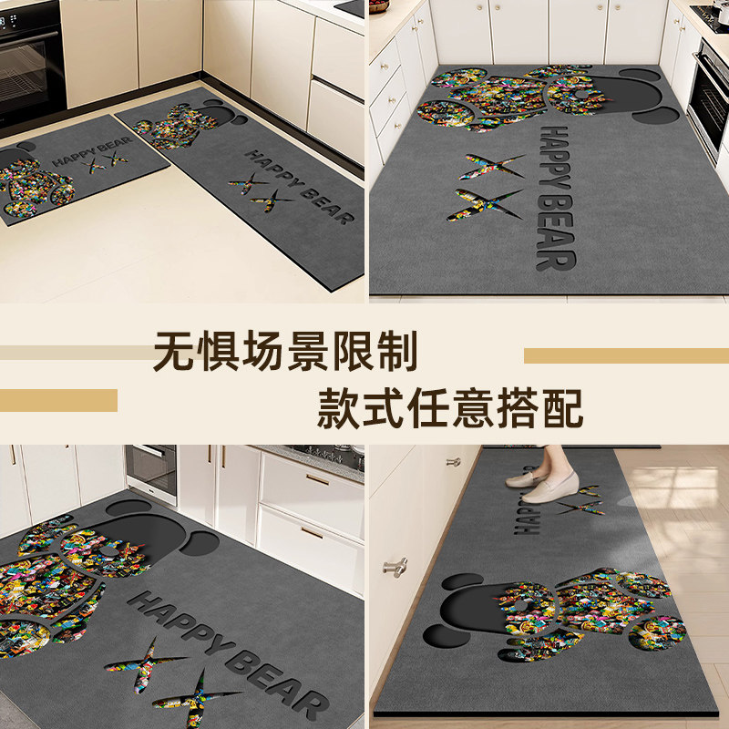 天猫厨房地垫防滑防油可擦免洗转角专用地毯吸水L型防水垫门口硅藻泥