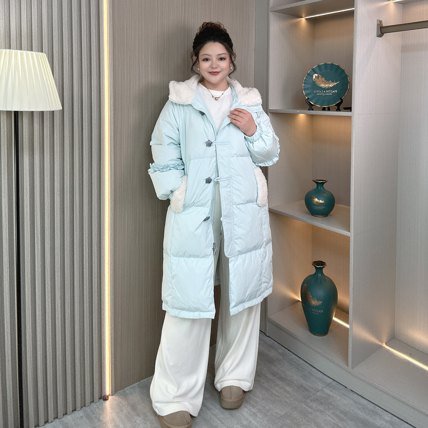 300斤胖莹莹大码女装保暖时尚宽松加厚收腰过膝长款羽绒服外套