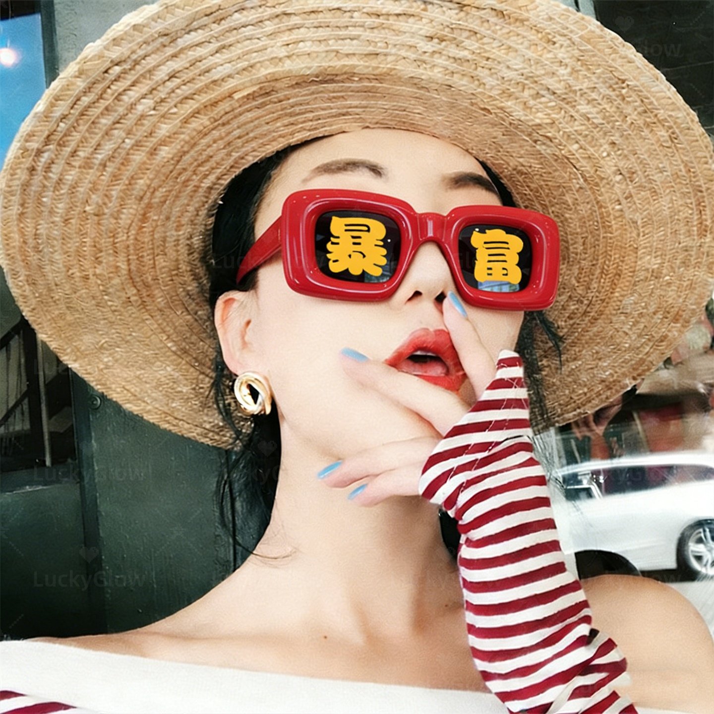 淘宝好运发财暴富红色眼镜新年拍照道工具影楼写真拍摄氛围感装饰品