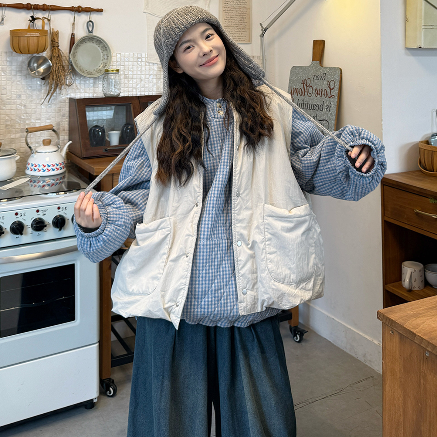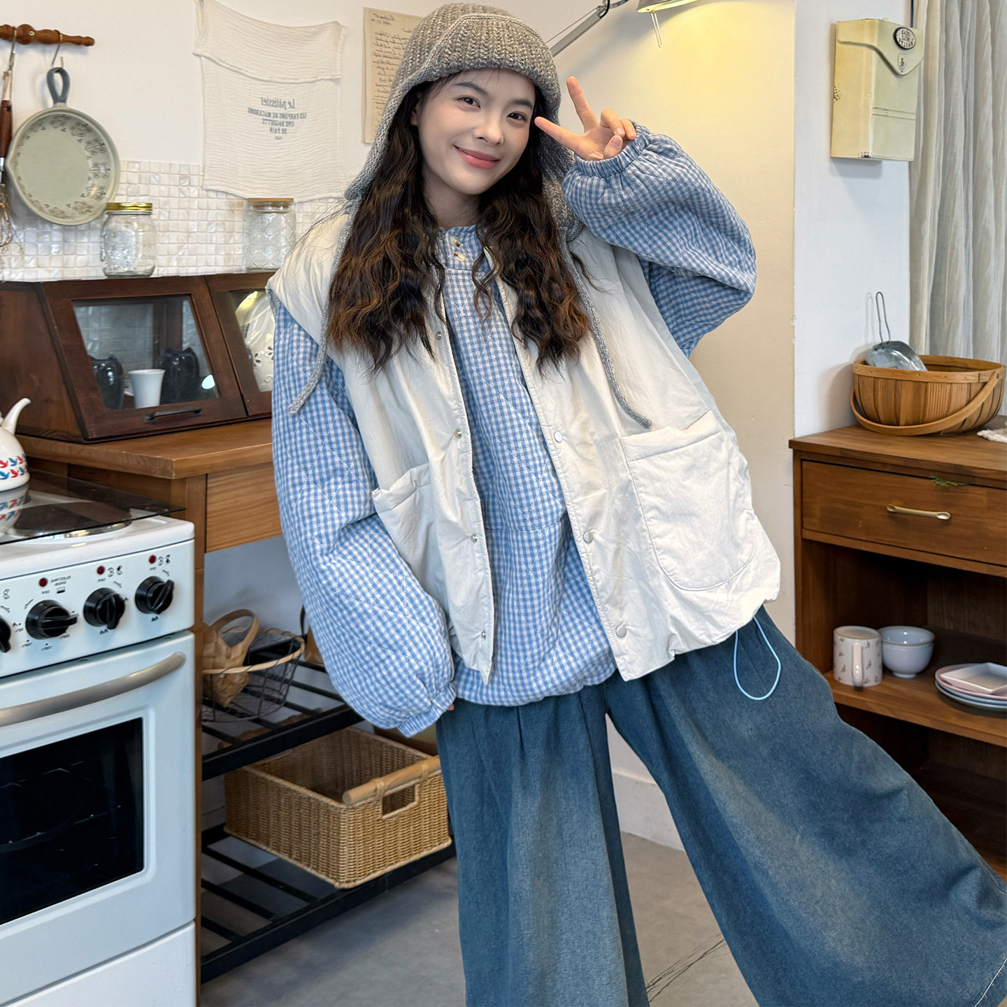2025冬季新款大码女装专为胖MM贴心设计,融合韩版时尚与实用保暖。套装包含夹棉格子卫衣外套与可拆卸棉马甲,层次穿搭灵活应对温差,宽松版型巧妙修饰身形,舒适不束缚。精选高品质棉质面料,柔软亲肤,内里加绒锁温,冬日穿着温暖又轻盈。搭配高腰直筒牛仔裤,拉长腿部线条,显瘦显高。格纹元素复古时髦,整体造型简约大气,兼顾潮流与舒适。无论是日常通勤还是休闲出行,都能轻松驾驭,展现自信优雅的穿搭态度。专为丰满女性打造,尺码齐全,让每一位女性都能穿出属于自己的美丽与风采。