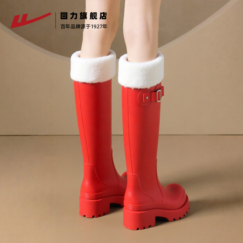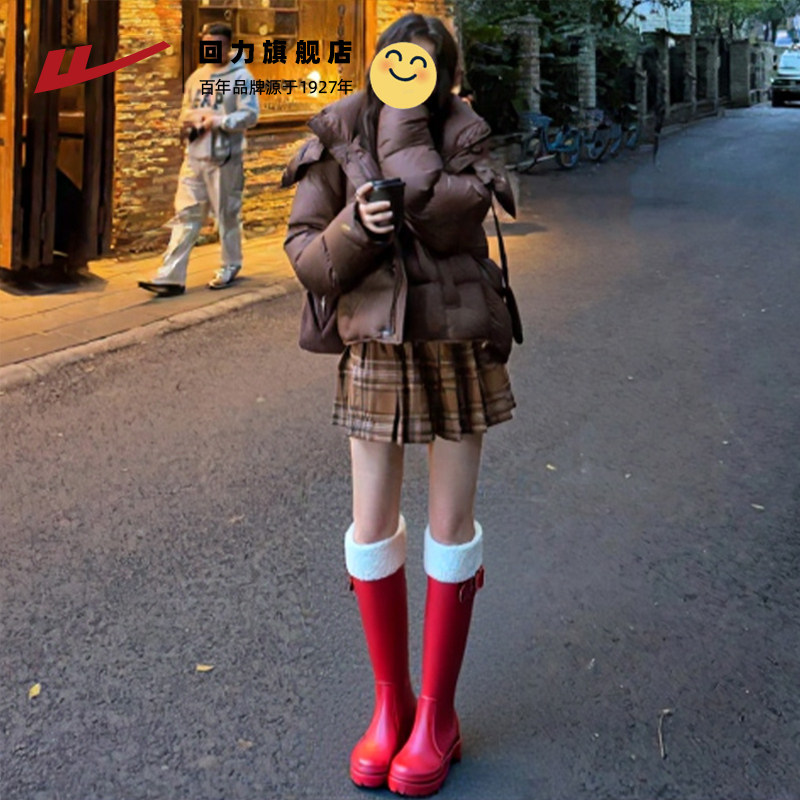 天猫回力红色加绒雨靴女款2025新款网红雨天东北户外露营防水高筒雨鞋