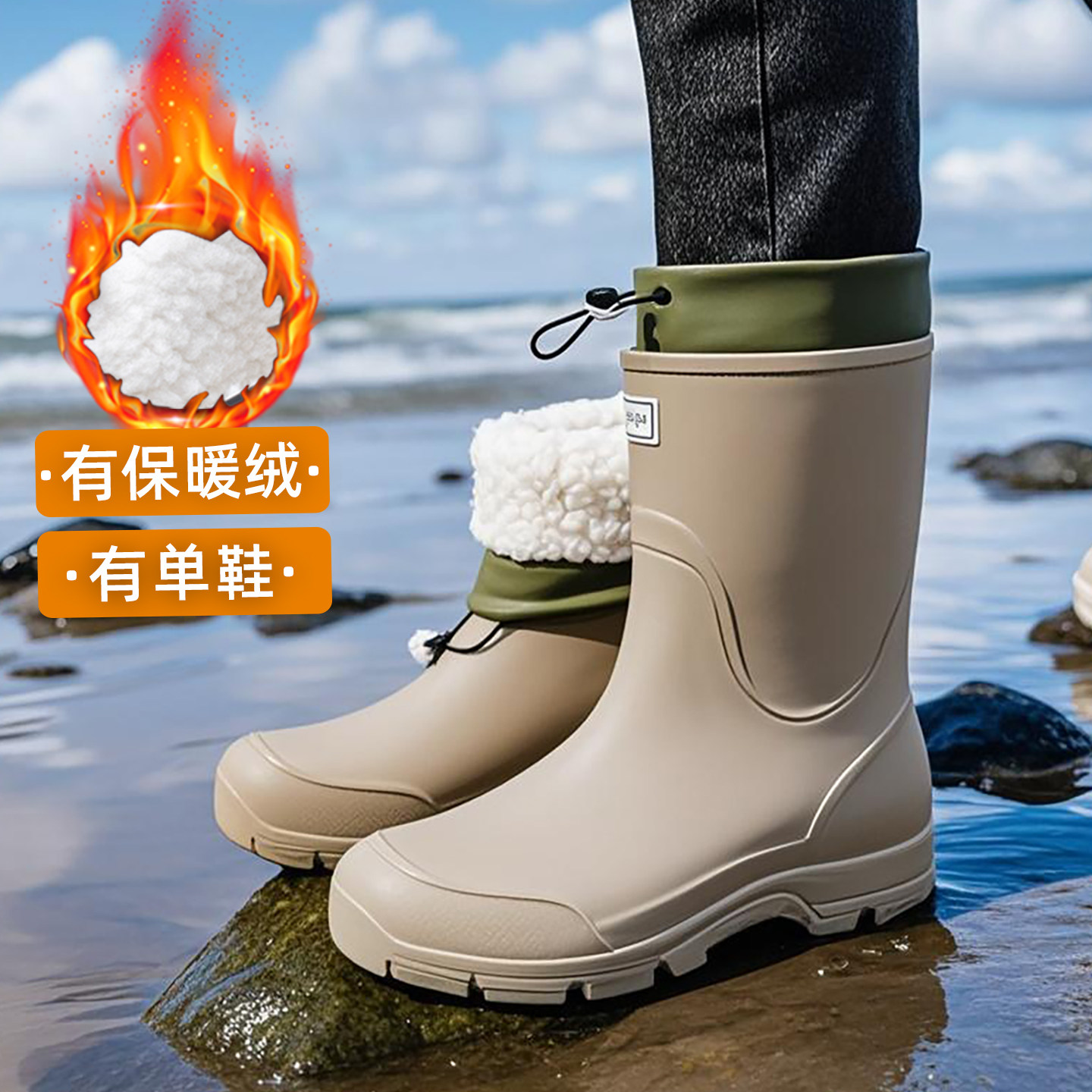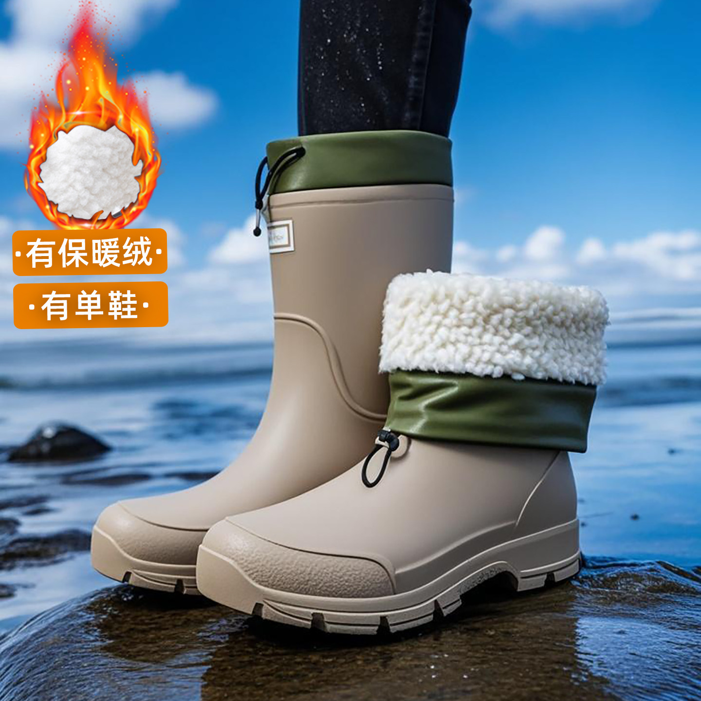 淘中筒时尚防水鞋保暖雨鞋雨靴女冬季高筒防滑套鞋成人工作胶鞋水靴