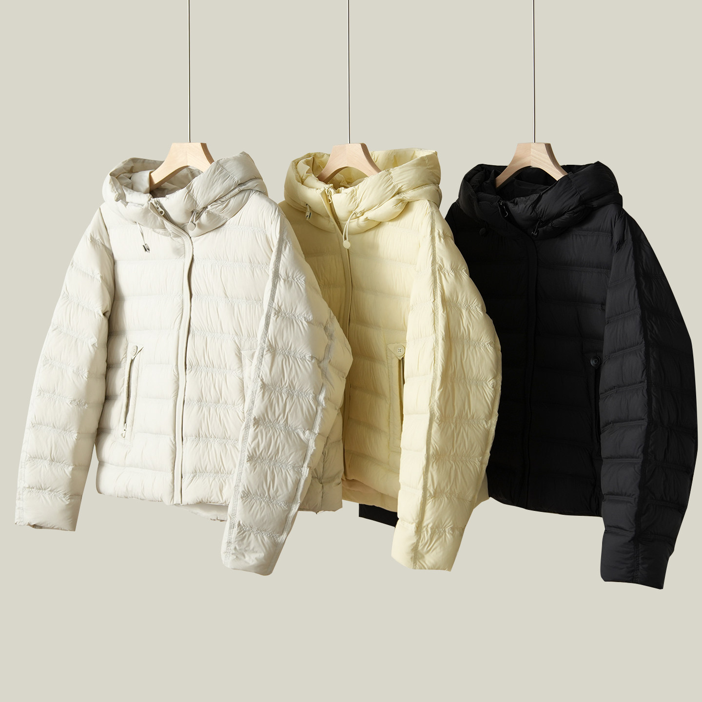 淘宝90绒子 女士连帽轻薄羽绒服 白鸭绒 短款面包服保暖外套 冬款女装