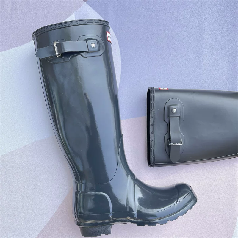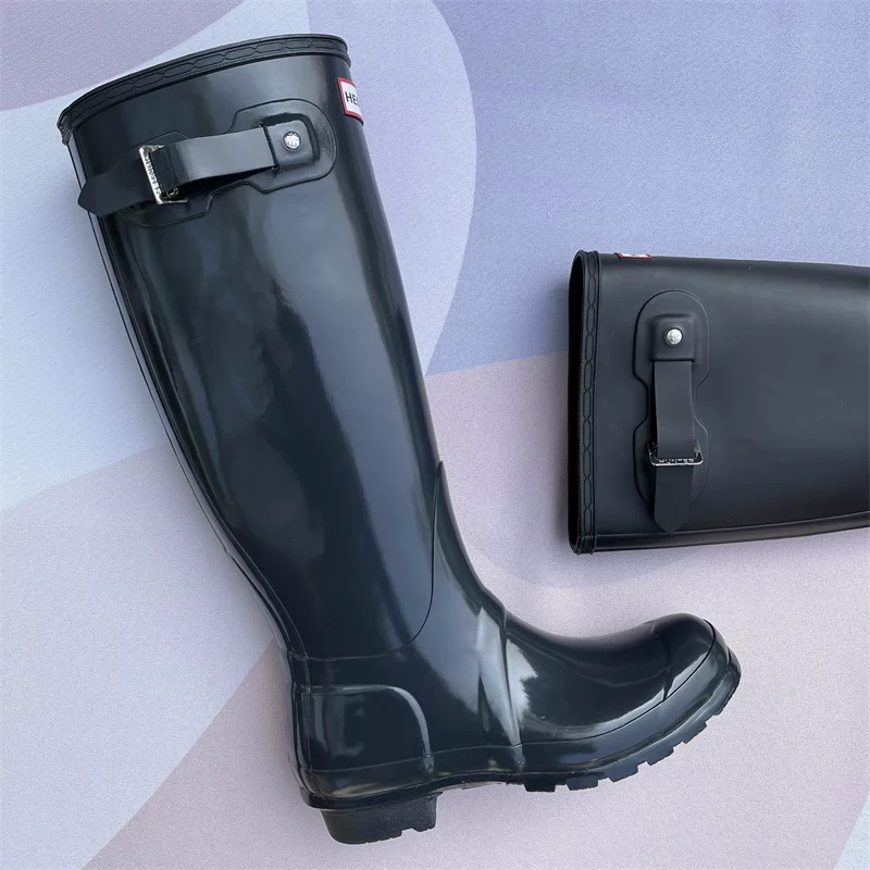 原版亨特(Hunter)女款高筒雨靴,采用优质天然橡胶材质,具备卓越的防水、防滑与耐磨性能,轻松应对雨天泥泞与湿滑路面。经典高筒设计有效保护腿部免受雨水侵袭,内里舒适透气,长时间穿着依然干爽。靴身线条优雅,延续亨特百年英伦工艺,兼具实用性与时尚感,可搭配裙装或休闲裤,轻松打造都市雨日造型。坚固鞋底防滑纹路深,抓地力强,确保行走安全。无论是城市通勤还是郊外漫步,这款雨靴都是雨季出行的理想之选,彰显品质与格调。