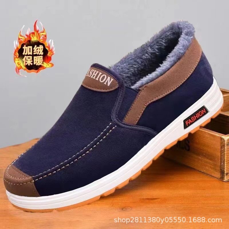 加绒保暖布鞋男帆布鞋男鞋一脚蹬秋冬新款牛筋底防滑耐磨休闲鞋男