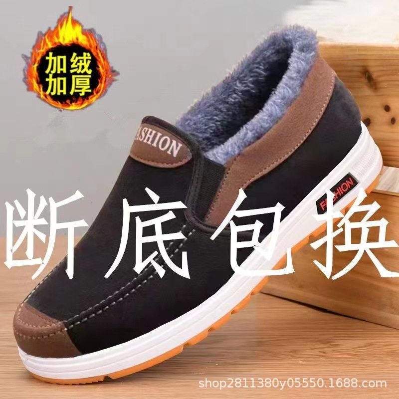 淘宝断码捡漏冬季老北京布鞋帆布鞋男高帮一脚蹬防滑耐磨工作鞋牛筋底
