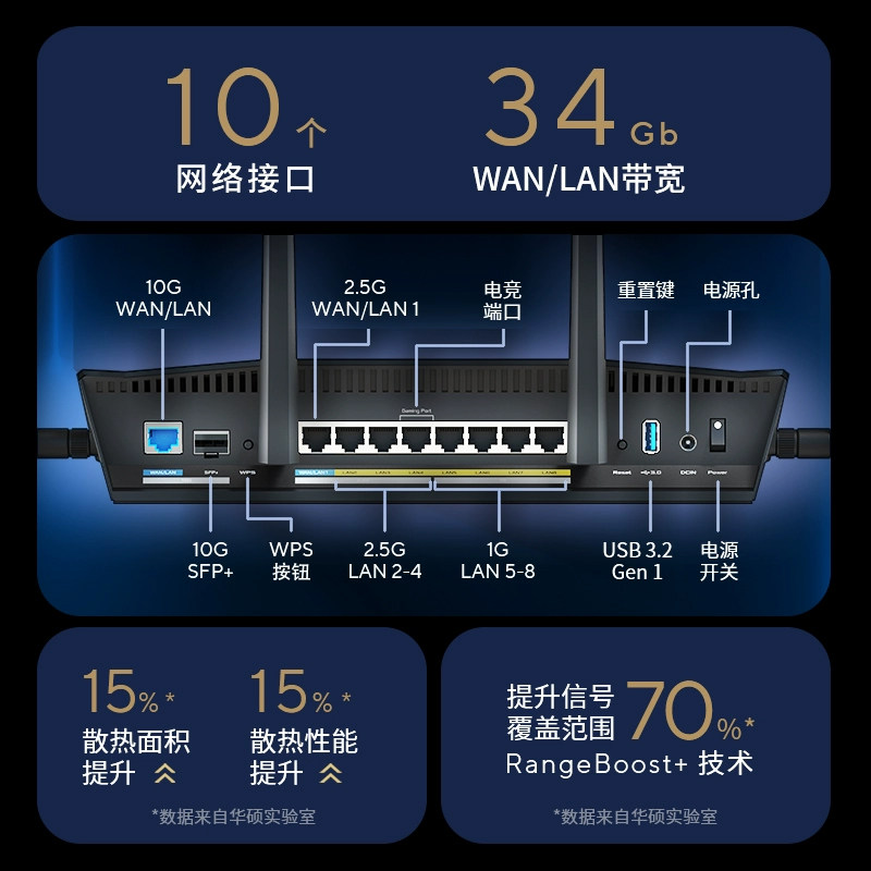 华硕RT-BE88U是一款搭载Wi-Fi 7技术的旗舰级路由器,支持7200Mbps高速无线传输,双频并发,超低延迟,专为电竞与高清流媒体优化。采用ROG玩家国度设计语言,配备炫酷灯效与强劲散热,性能卓越。支持Mesh组网,轻松实现全屋无死角覆盖,千兆网口满足高速有线连接需求。现推出【限时补贴10%全国】活动,性价比再升级,助力用户畅享极速网络体验。无论是多设备并发、4K/8K视频,还是大型在线游戏,RT-BE88U都能稳定高效应对,是追求极致网络性能用户的理想之选。