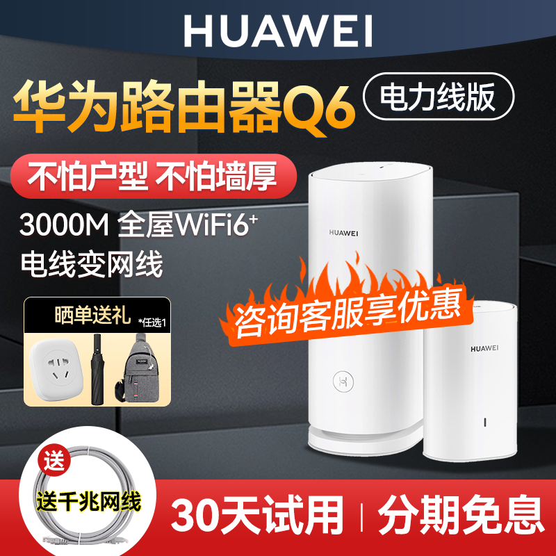 天猫华为子母路由器Q6电力线千兆端口家用高速全屋覆盖别墅wifi6+电线变网线NFC联网ap面板q6e电力版3000M