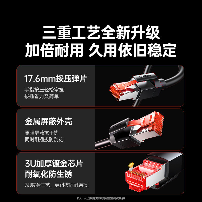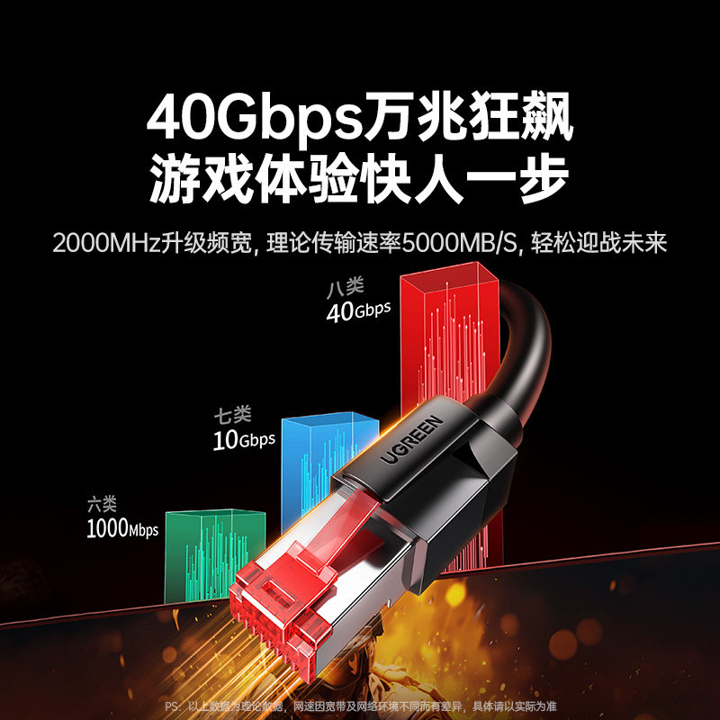 天猫绿联八类网线千/万兆家用七7超六光纤cat8路由器宽带电竞连接电脑