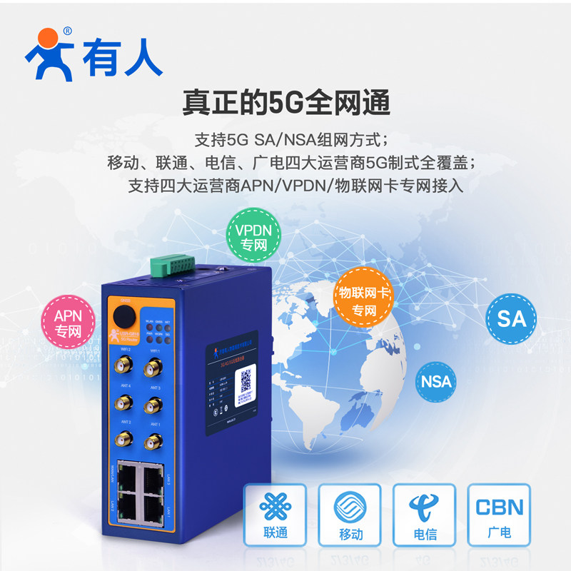 天猫有人5g插卡工业级路由器RedCap千兆CPE多网口双频WiFi高通芯片全网通485/232串口USR-G816