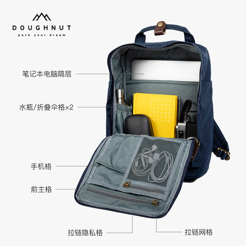 Doughnut甜甜圈双肩包是一款集时尚与实用于一体的轻便旅行背包,适合男女日常通勤、短途旅行及校园使用。采用轻量化防水面料,结实耐磨,有效保护包内物品。大容量主仓设计,内置电脑隔层,可安全容纳15.6英寸笔记本,另有多个分层收纳袋,轻松分类存放文具、水杯、充电宝等随身物品。符合人体工学的宽厚肩带与透气背垫,长时间背负舒适不勒肩。简约百搭的外观设计,搭配精致五金与细节走线,彰显品质感。无论是上班、上学还是周末出游,Doughnut双肩包都能满足你的多样需求,是都市生活的理想伴侣。