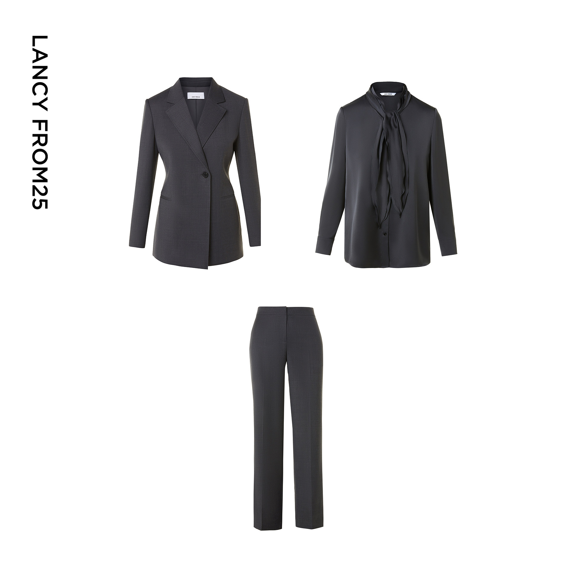 朗姿2026年春季新款女式通勤西装系列,以高级质感与时尚设计诠释现代女性职场魅力。精选优质面料,剪裁利落流畅,融合经典西装版型与当下流行元素,打造兼具干练与优雅的都市气质。西装外套线条简约,衬衫采用微光质感面料,细节处点缀精致纽扣与收腰设计;西裤高腰修身,拉长腿部比例,整体搭配尽显知性从容。无论是商务会议还是日常通勤,都能轻松驾驭,展现自信从容的时尚态度。朗姿以匠心工艺与前瞻审美,为现代女性打造兼具功能性与美学的高级通勤衣橱。