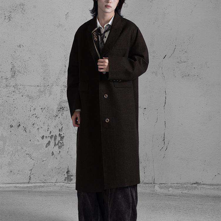 淘宝No sense无感官&浮游野人 长款羊毛呢子大衣西装领毛呢男女外套