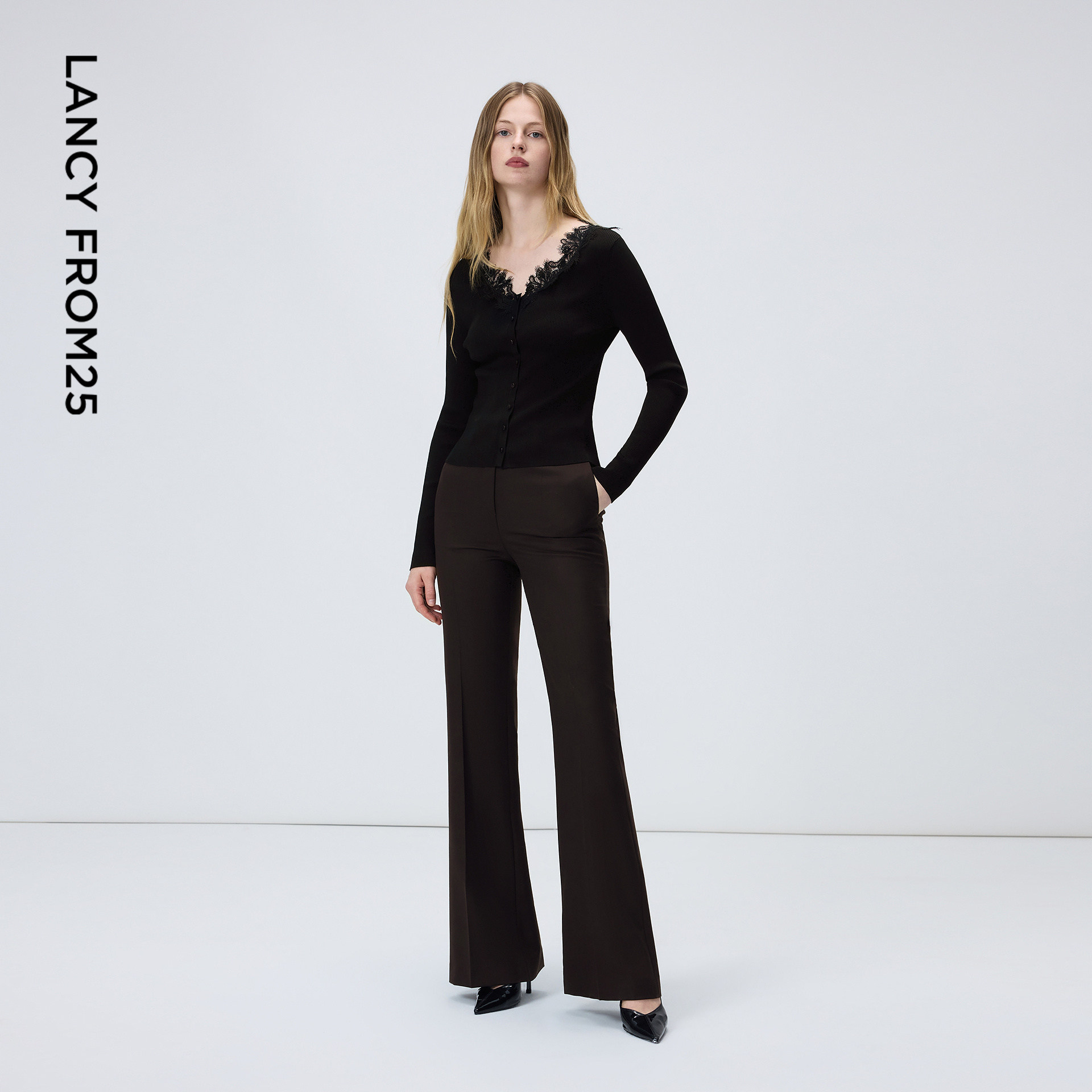 LANCY/朗姿2025秋新款高级感通勤羊毛西装外套女直筒阔腿西裤套装