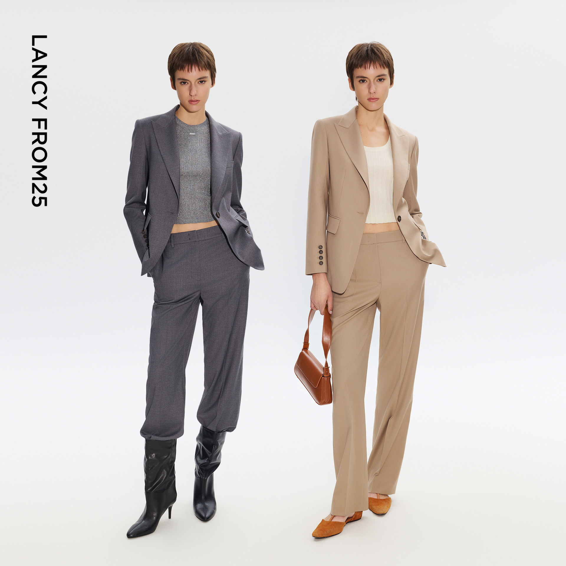 LANCY/朗姿2025秋新款高级感通勤羊毛西装外套女直筒阔腿西裤套装