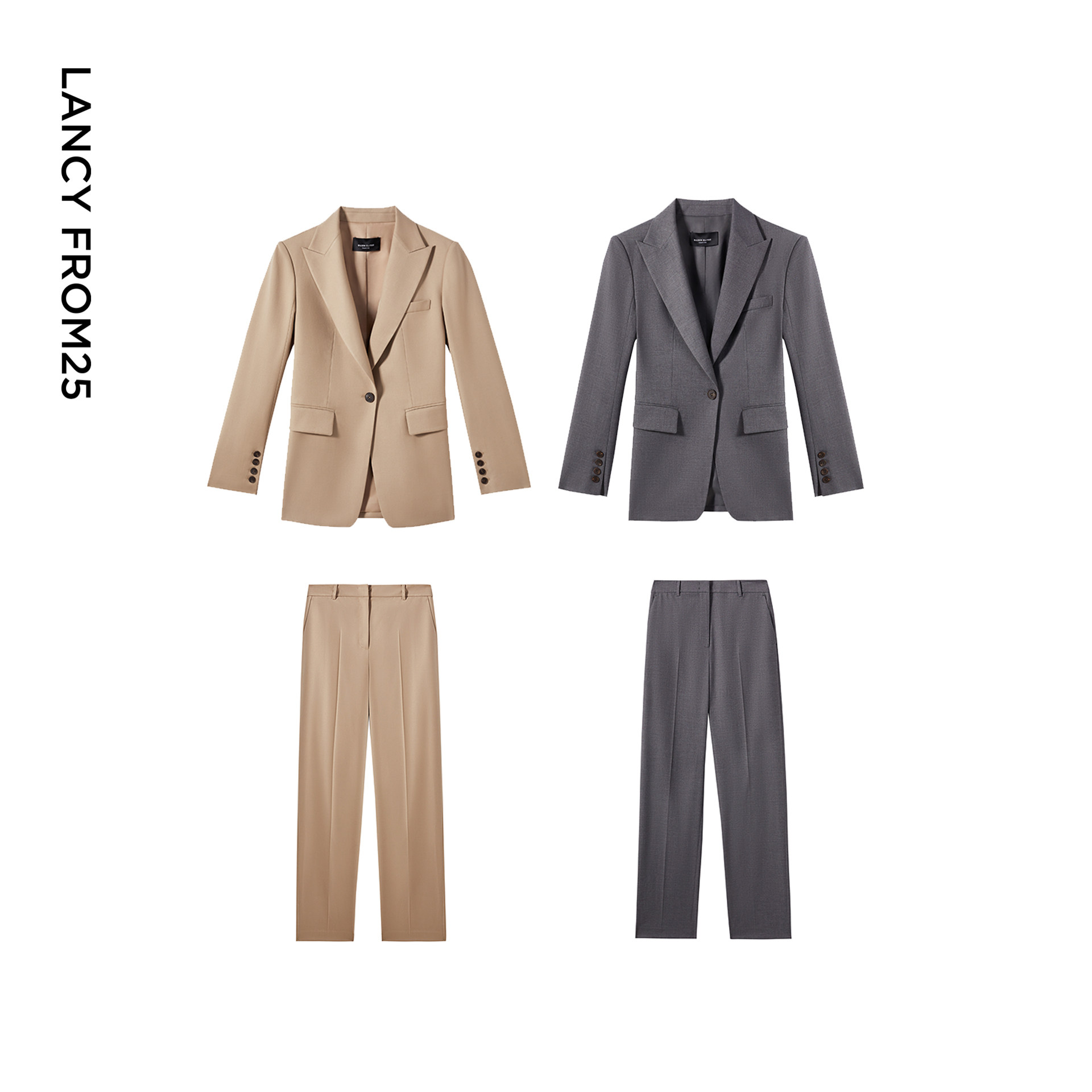 朗姿纯羊毛灰西装外套/西裤高级感通勤气质西服2025年冬季新款女