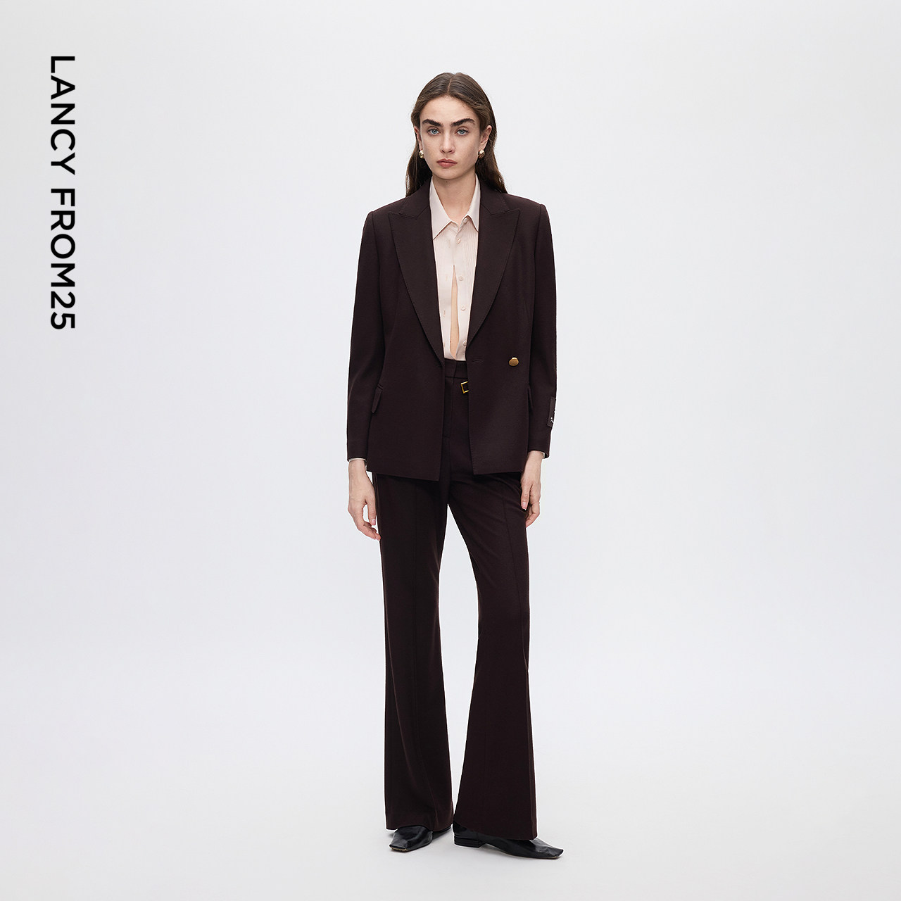 朗姿2025年冬季新款羊毛收腰显瘦老钱风西装套装,以复古优雅为设计理念,精选高品质羊毛面料,挺括有型且保暖舒适。收腰剪裁巧妙勾勒女性曲线,搭配流畅的西裤线条,尽显知性干练又不失柔美气质。整体采用低调中性色调,如燕麦色、深驼与炭灰,彰显老钱风的高级质感。细节处融入复古金属扣、精致滚边等元素,提升整体精致度。无论是职场通勤还是休闲社交,都能轻松驾驭,展现从容自信的摩登风范,是冬季衣橱中不可或缺的优雅之选。